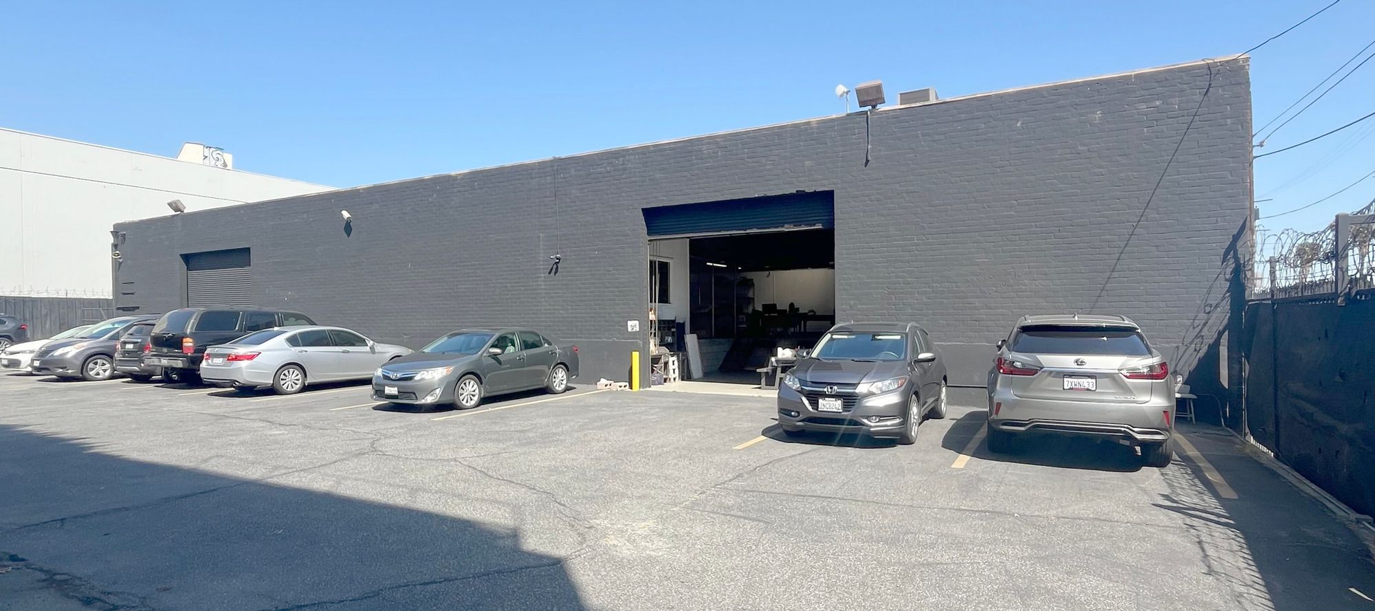 Warehouse/storage space with offices and fenced parking near freeway.