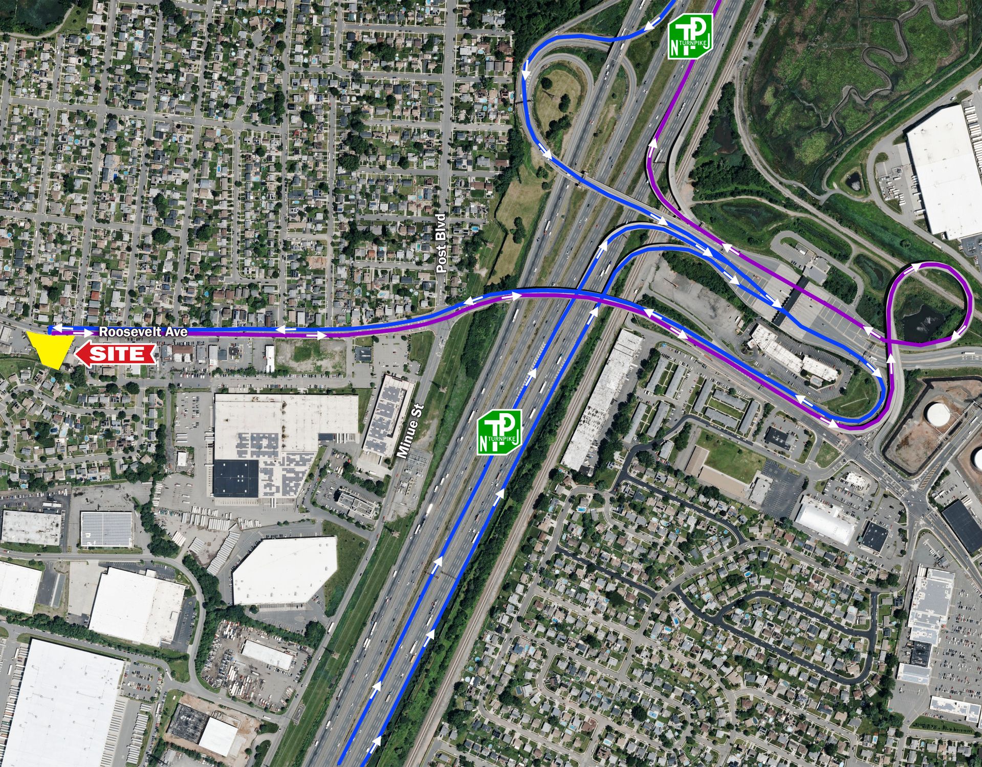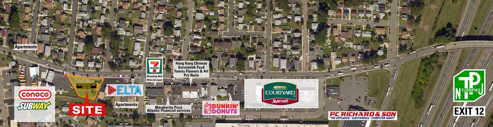 Retail pad site for lease on heavily traveled Roosevelt Avenue.