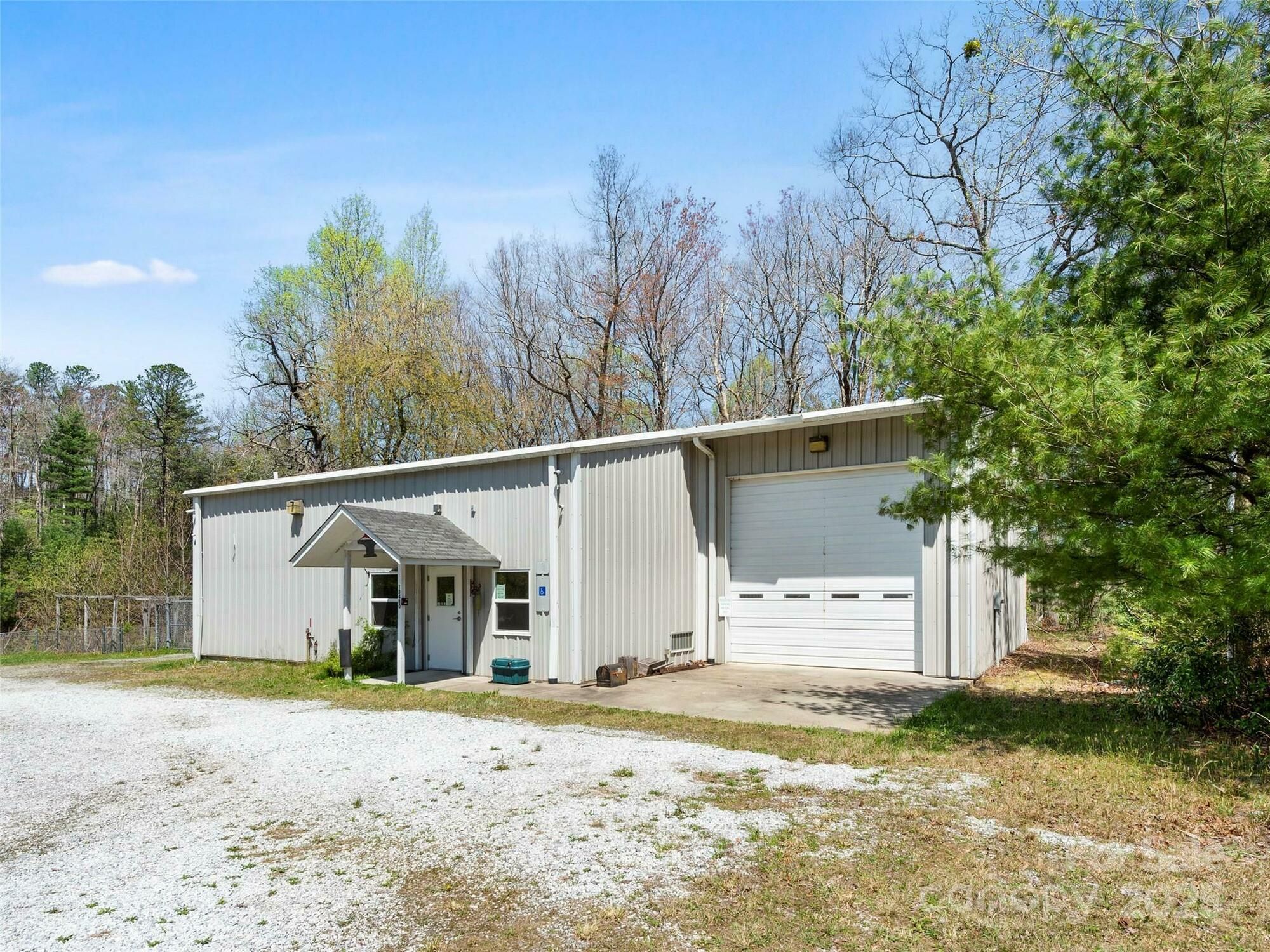 The property at 13480 Rosman Highway, Lake Toxaway, offers a 3,056 SF fully insulated flex warehouse on 1.12 acres. Constructed in 2003, this building is zoned Open Use and is currently vacant. It features high ceilings, a large storage loft, and a fully operational 3-ton overhead crane. This property is suitable for light industrial use, specialized trades, or a private workspace for recreational or automotive projects. It is ideal for an owner-occupant seeking a flexible space to grow a business or for a buyer looking for a multipurpose facility.