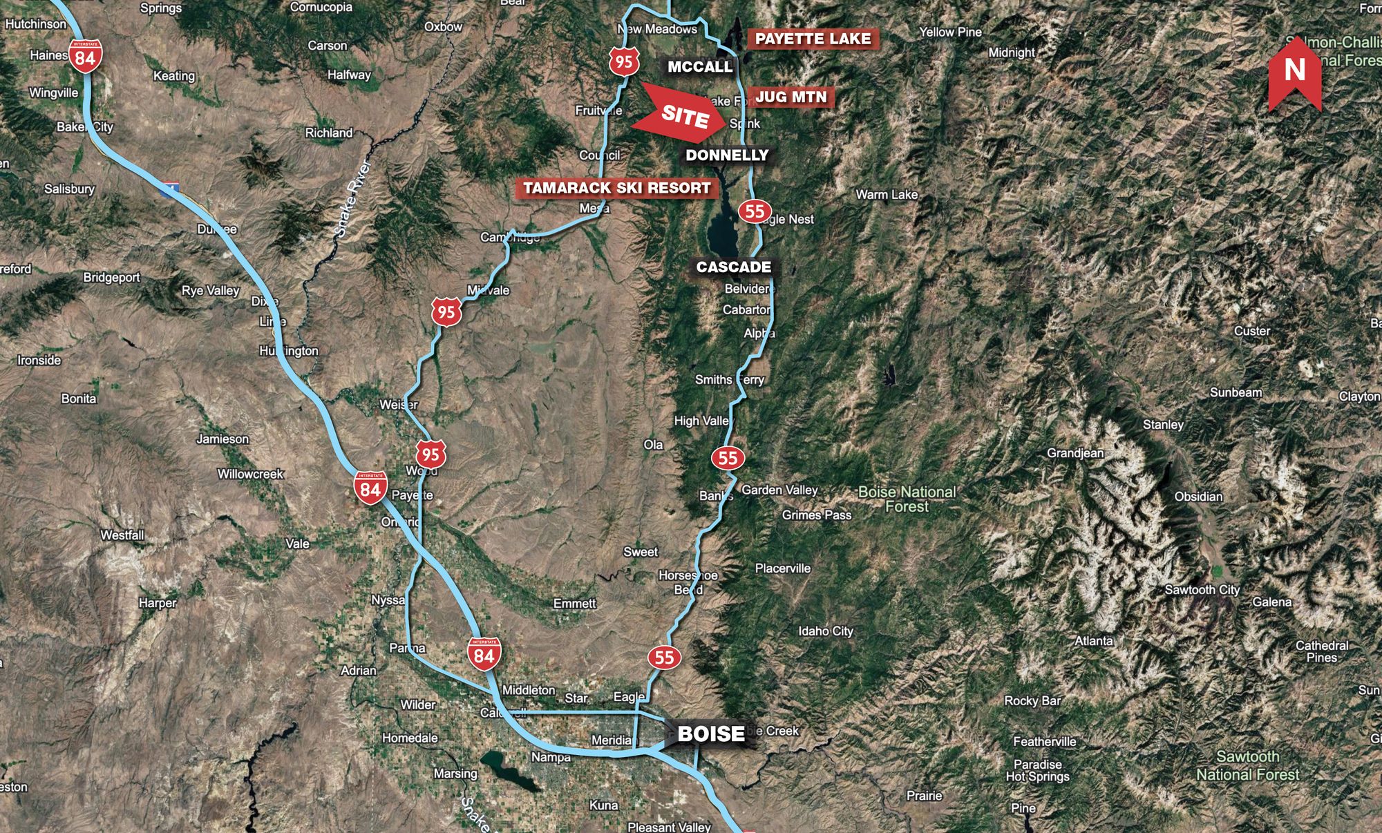 Land parcels with highway frontage between Donnelly and McCall.