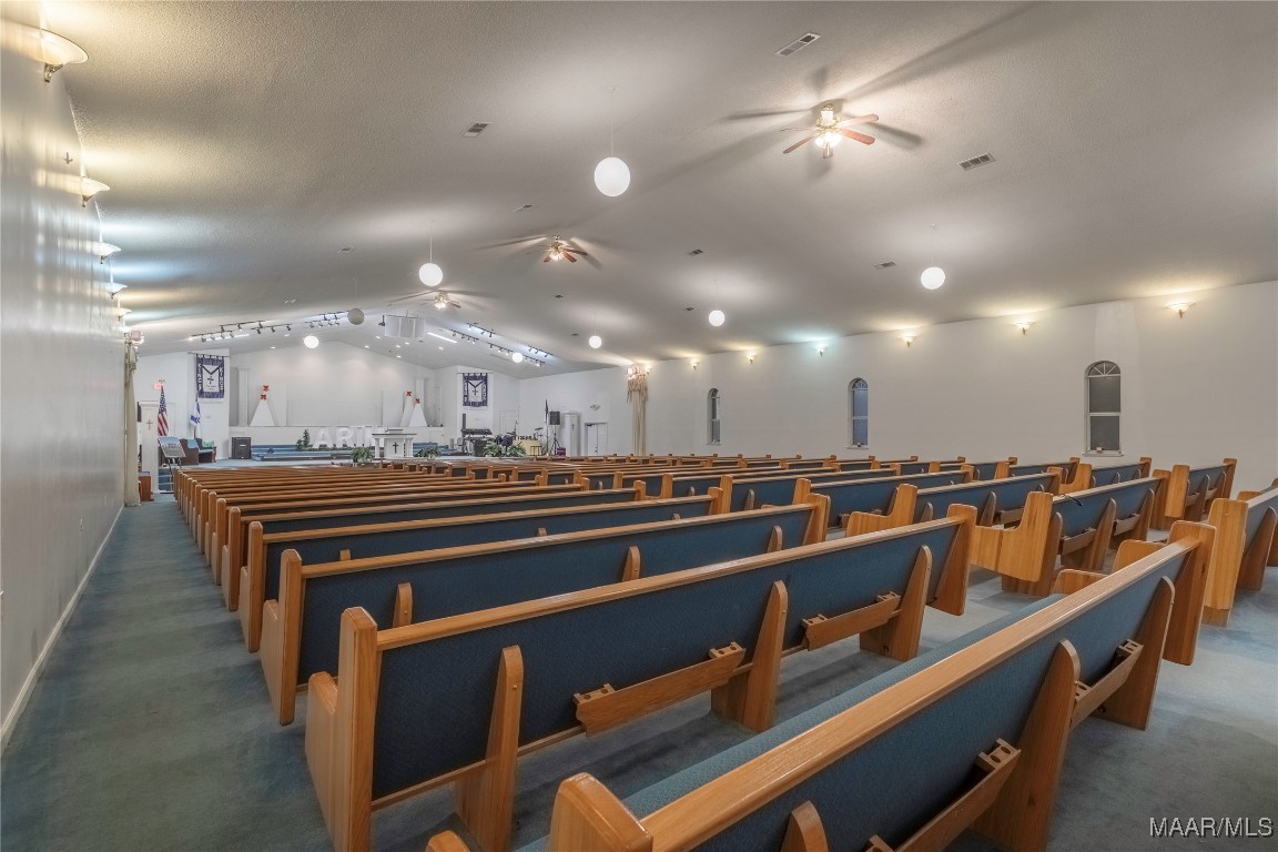 Well-equipped church facility with sanctuary, hall, classrooms, and offices.