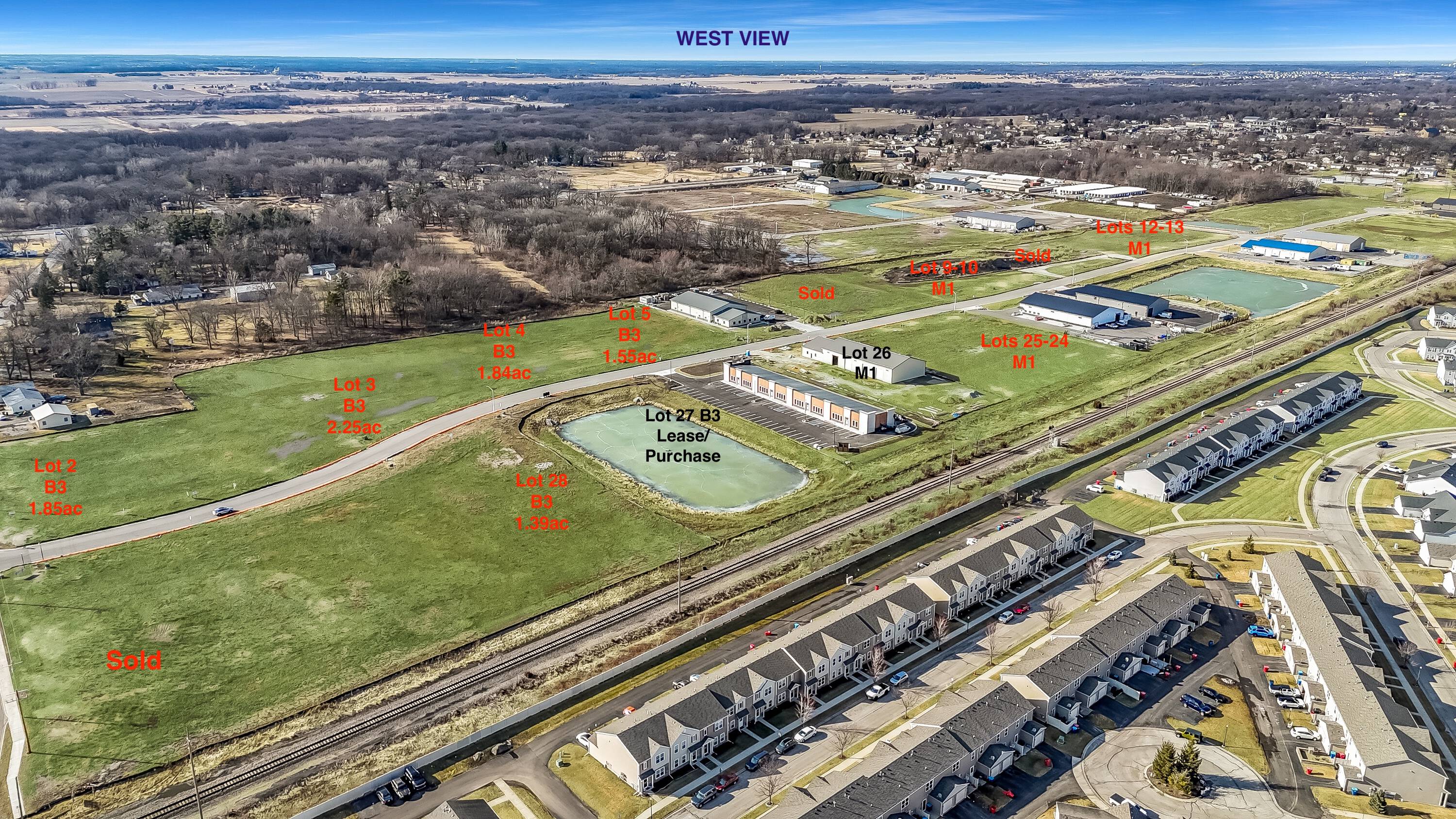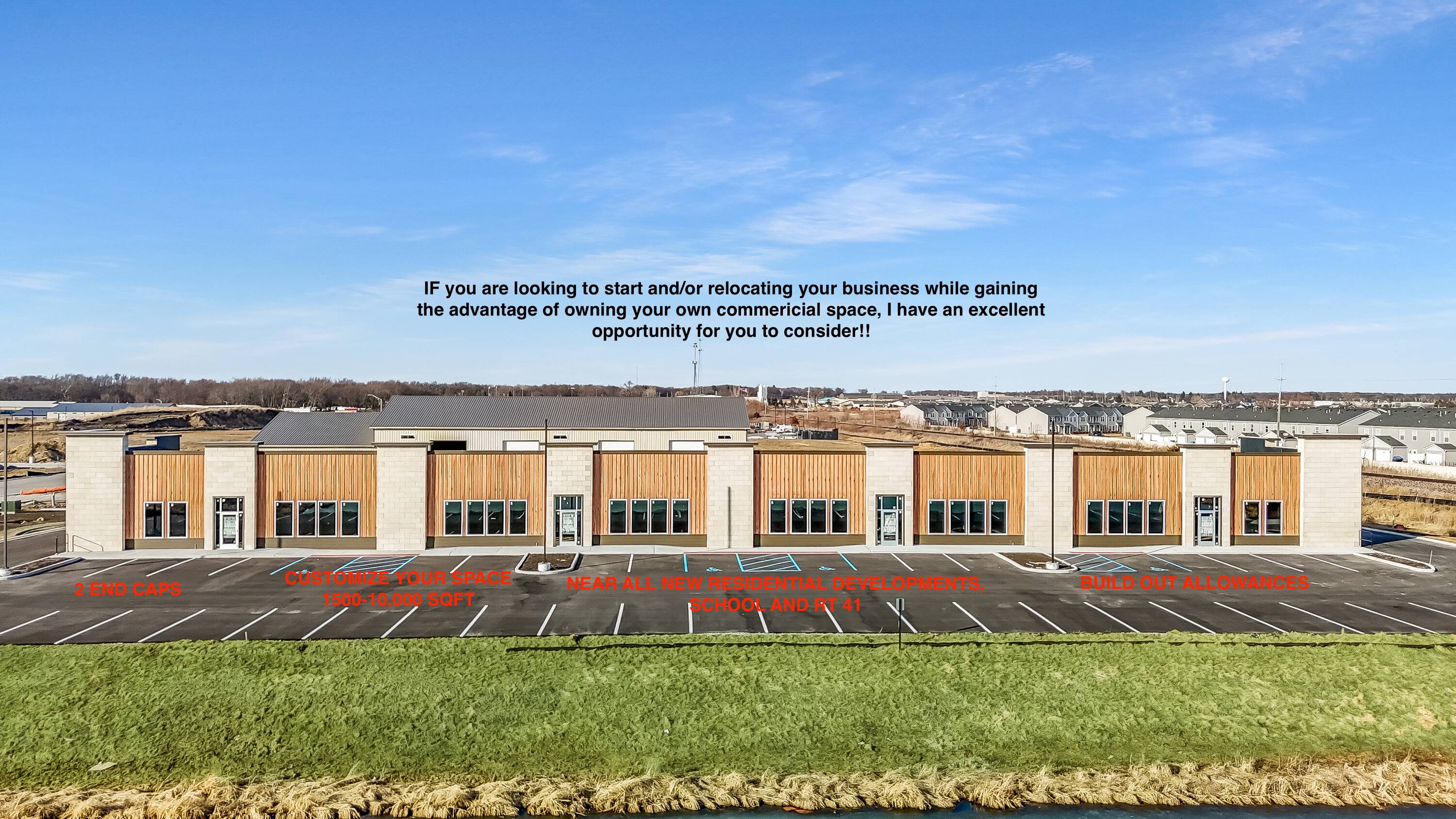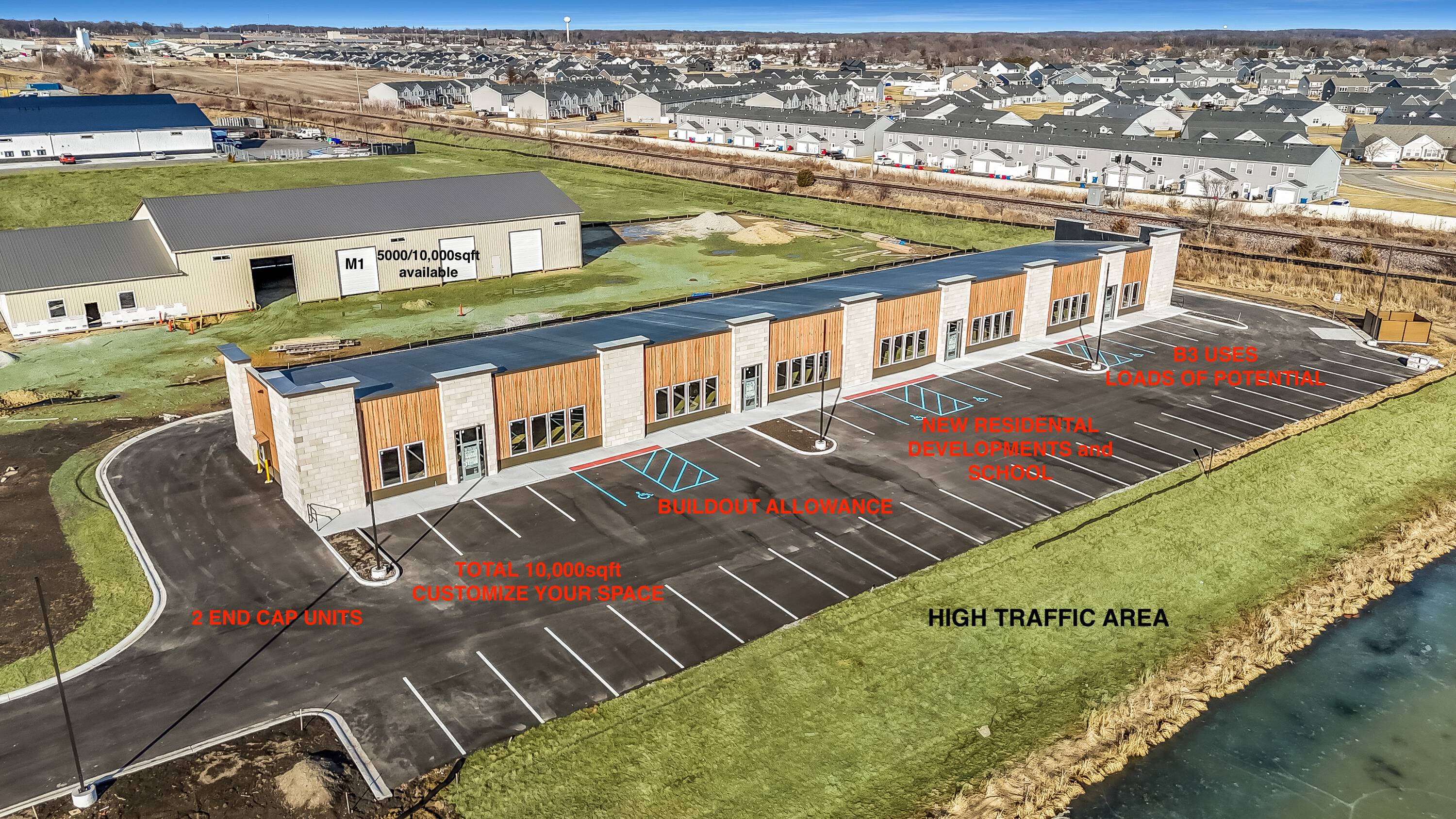 Commercial space and B3-zoned lots available for lease or purchase.
