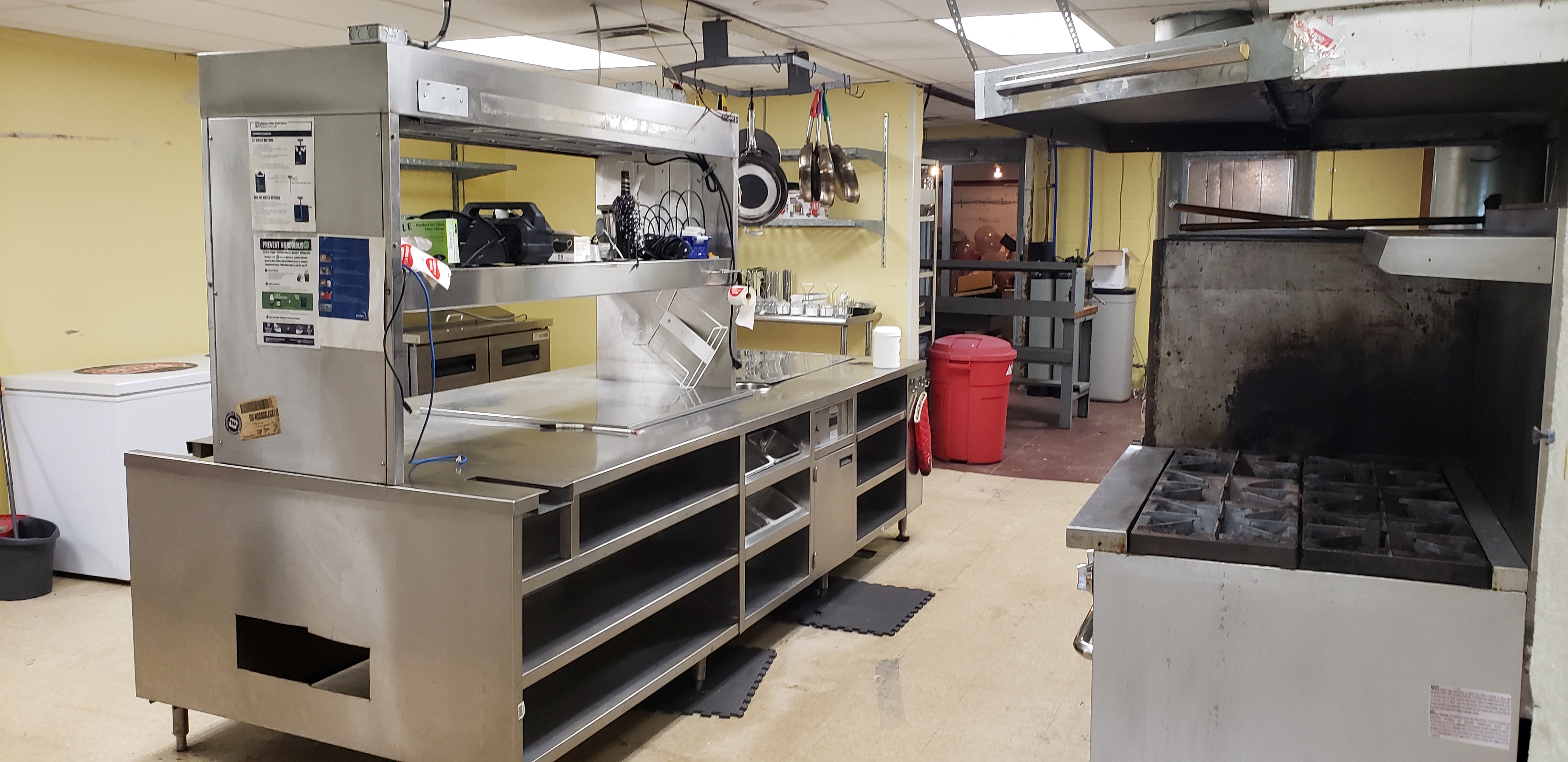 Retail building with bar, event spaces, and kitchen for sale.