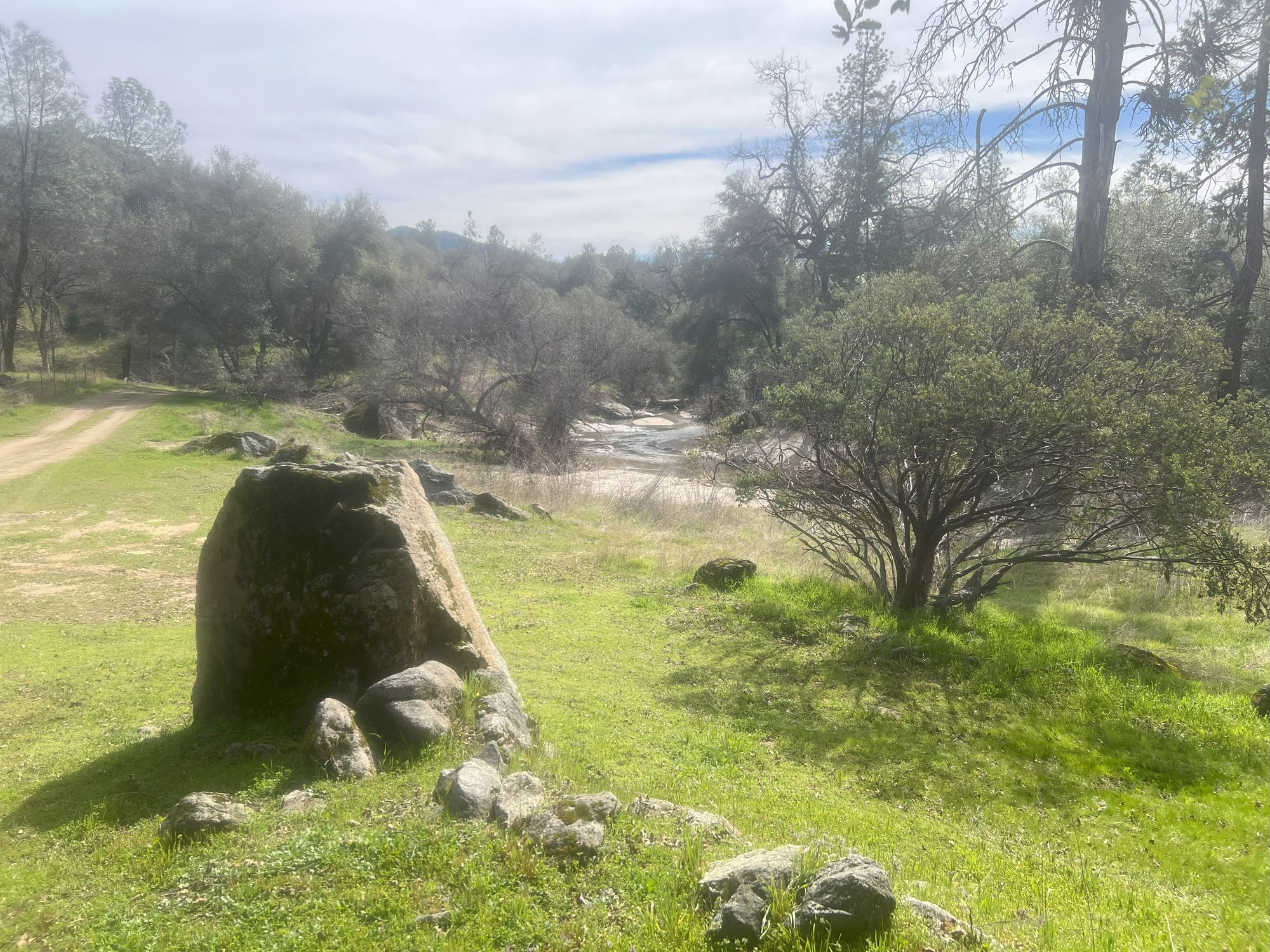 This 160-acre property features two log cabins, one measuring 864 square feet and the other 720 square feet. The property is located approximately 10 miles southeast of Prather, near Tollhouse, California. It is situated on a large stream that flows year-round in most years. The land is surrounded on three sides by government land. The area is home to a variety of wildlife, including deer, pig, ducks, geese, quail, coyote, and dove. Additional amenities include storage, a campfire site, and swimming holes. The property is ideal for hunting and recreation.