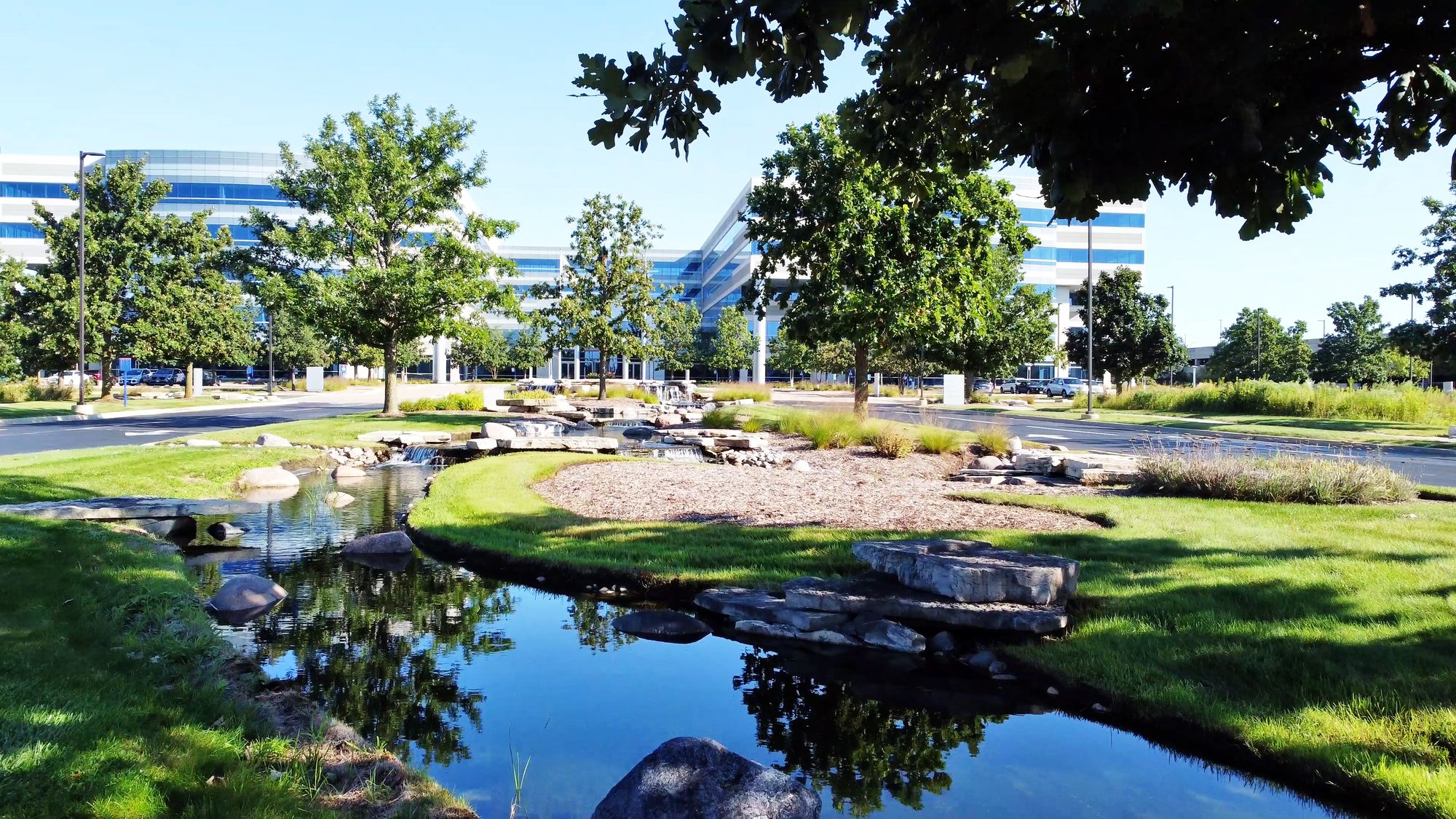 75-acre campus with green space, fitness center, and collaboration areas.