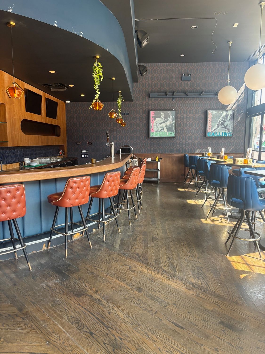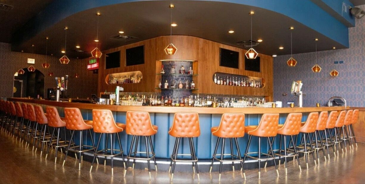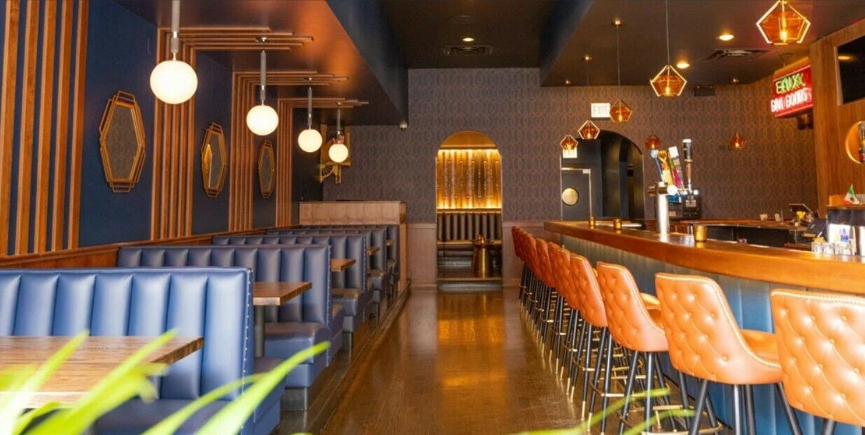 Two-story commercial building with restaurant and office space.