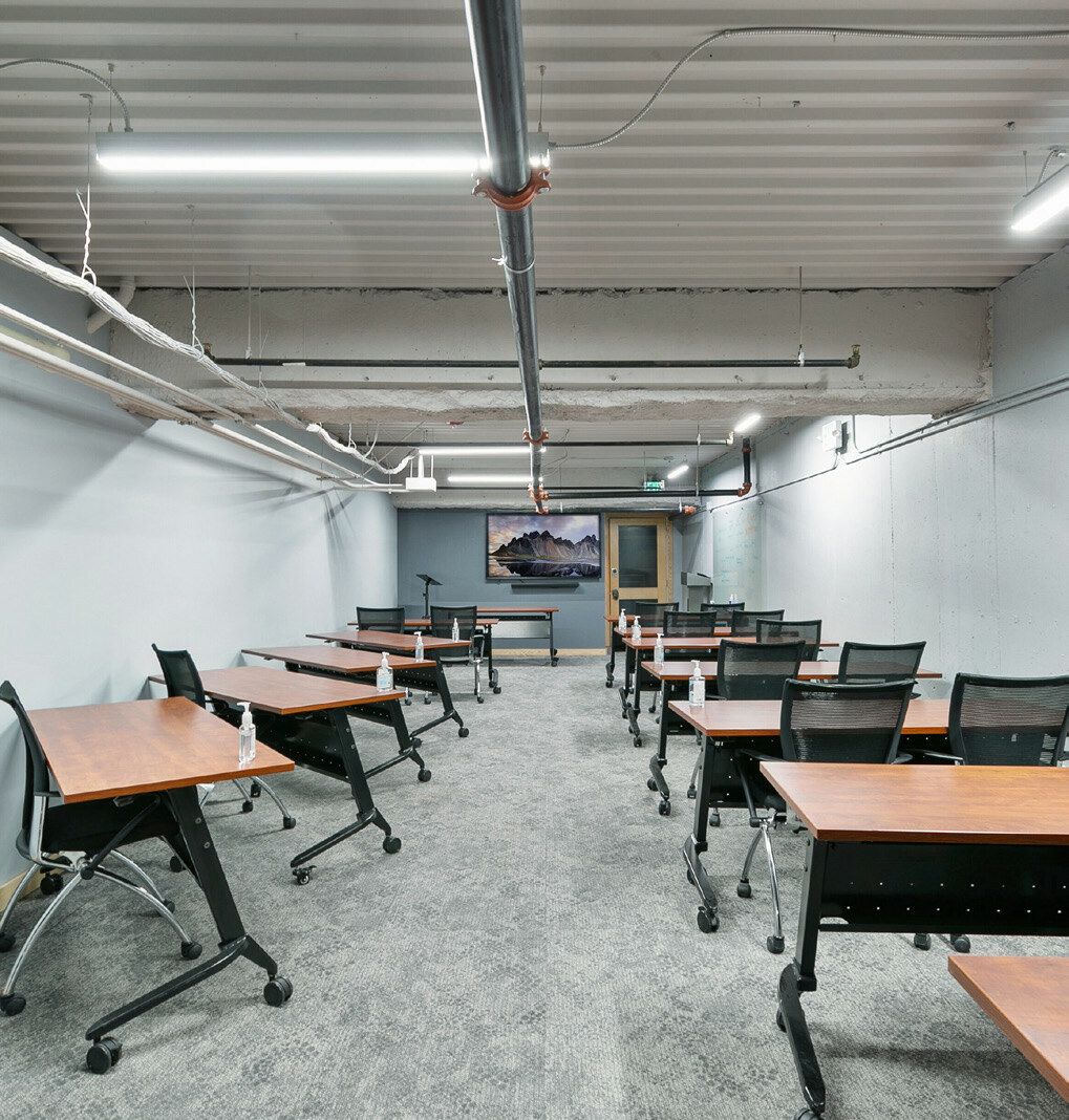 Renovated office building with shared amenities and transit access.