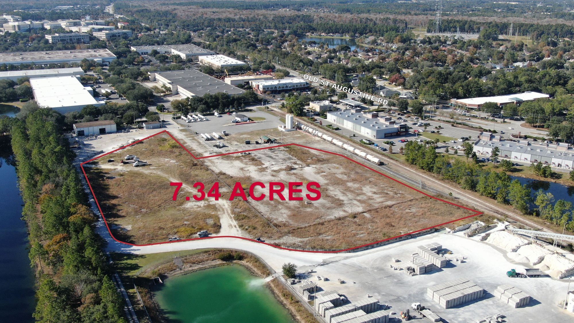 7.34+ acre stabilized yard, divisible, ideal for outdoor storage.