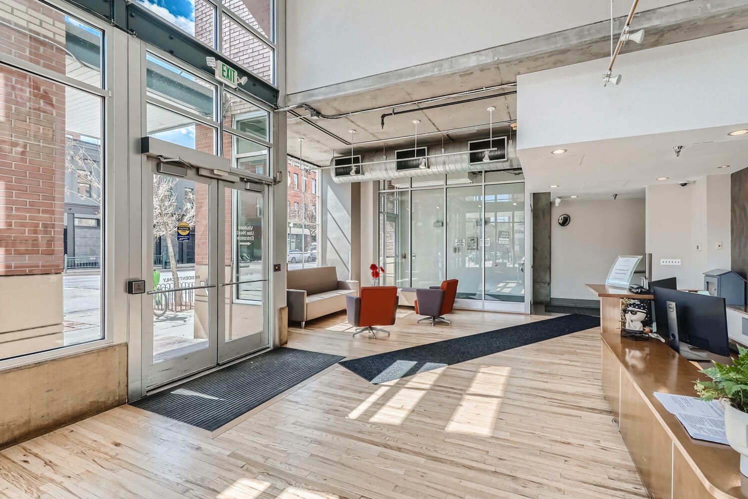 LoDo apartment condos with ground floor entry and high ceilings.