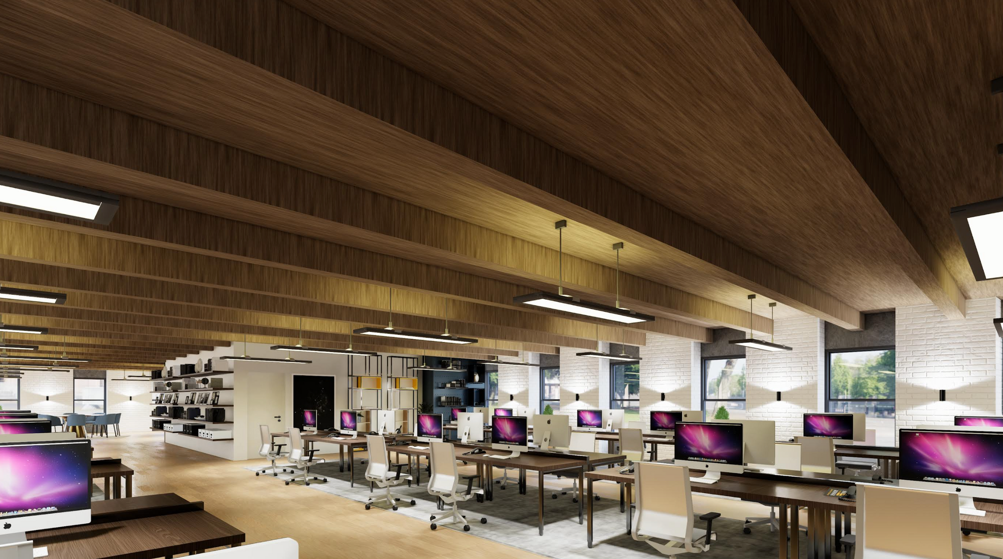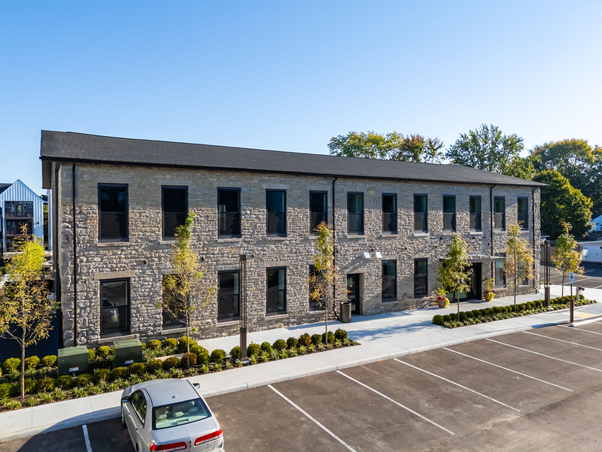 Retail and office spaces in a new mixed-use complex.