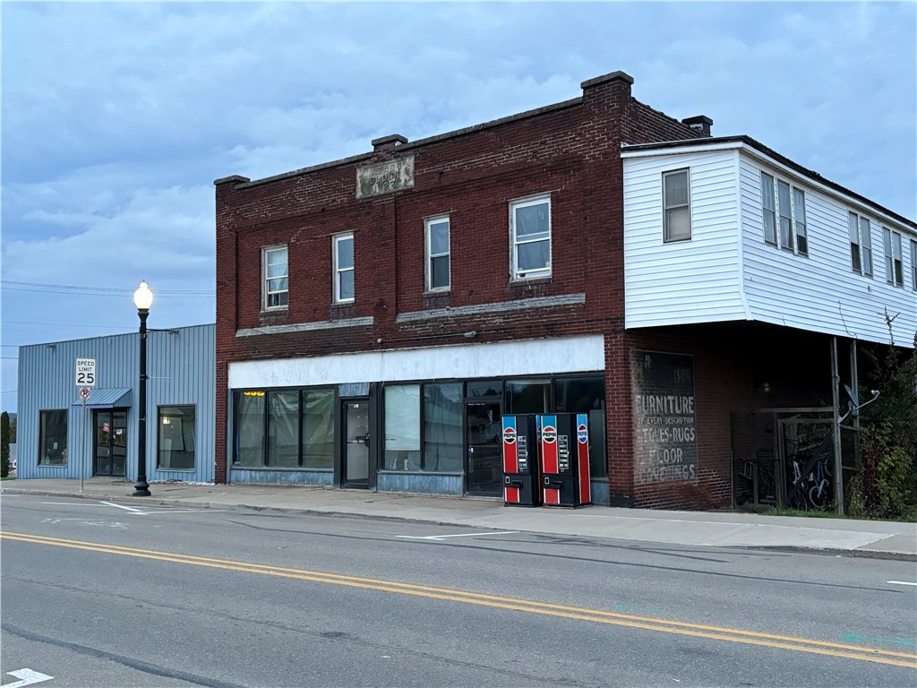 Mixed-use property featuring storefronts, apartments, and rental homes.