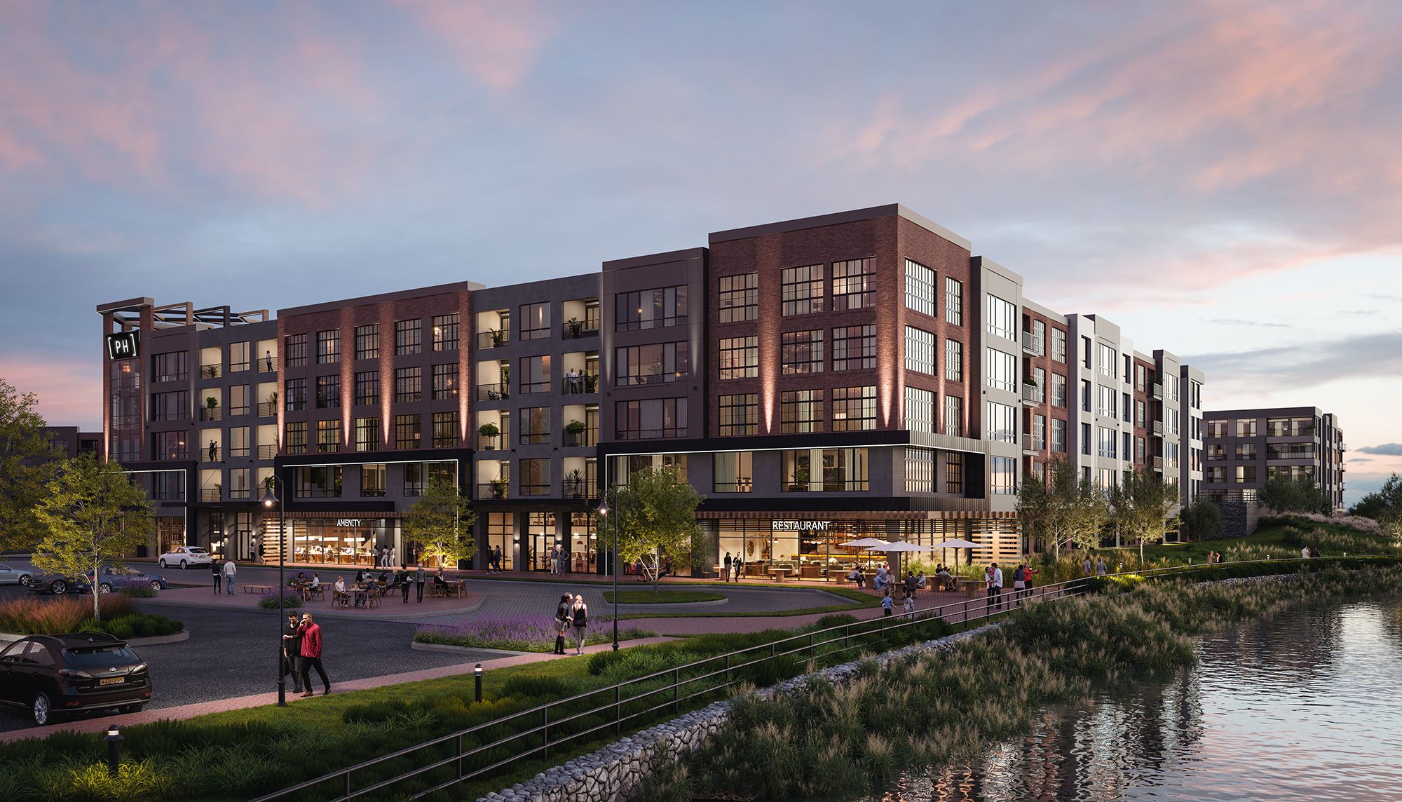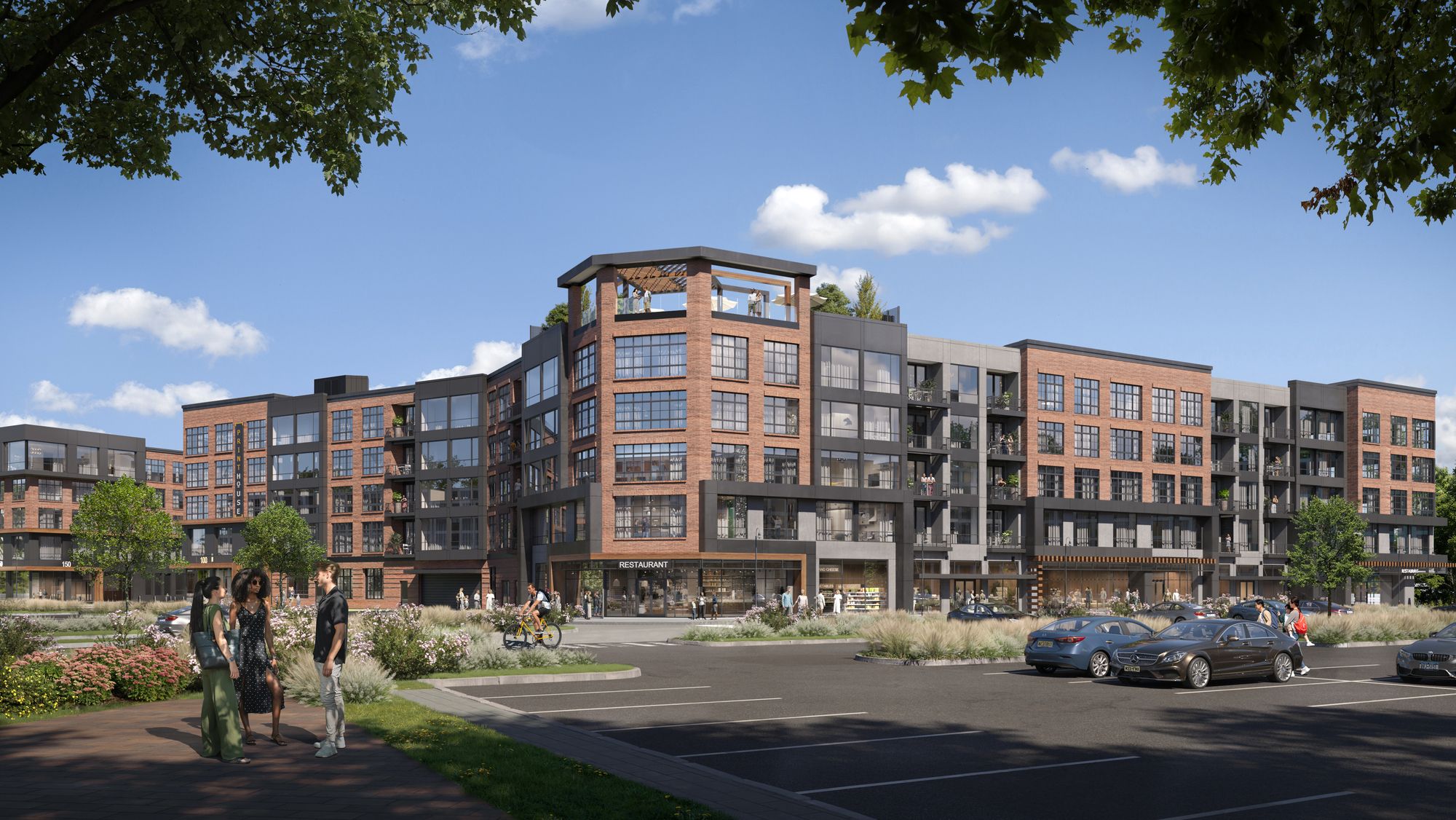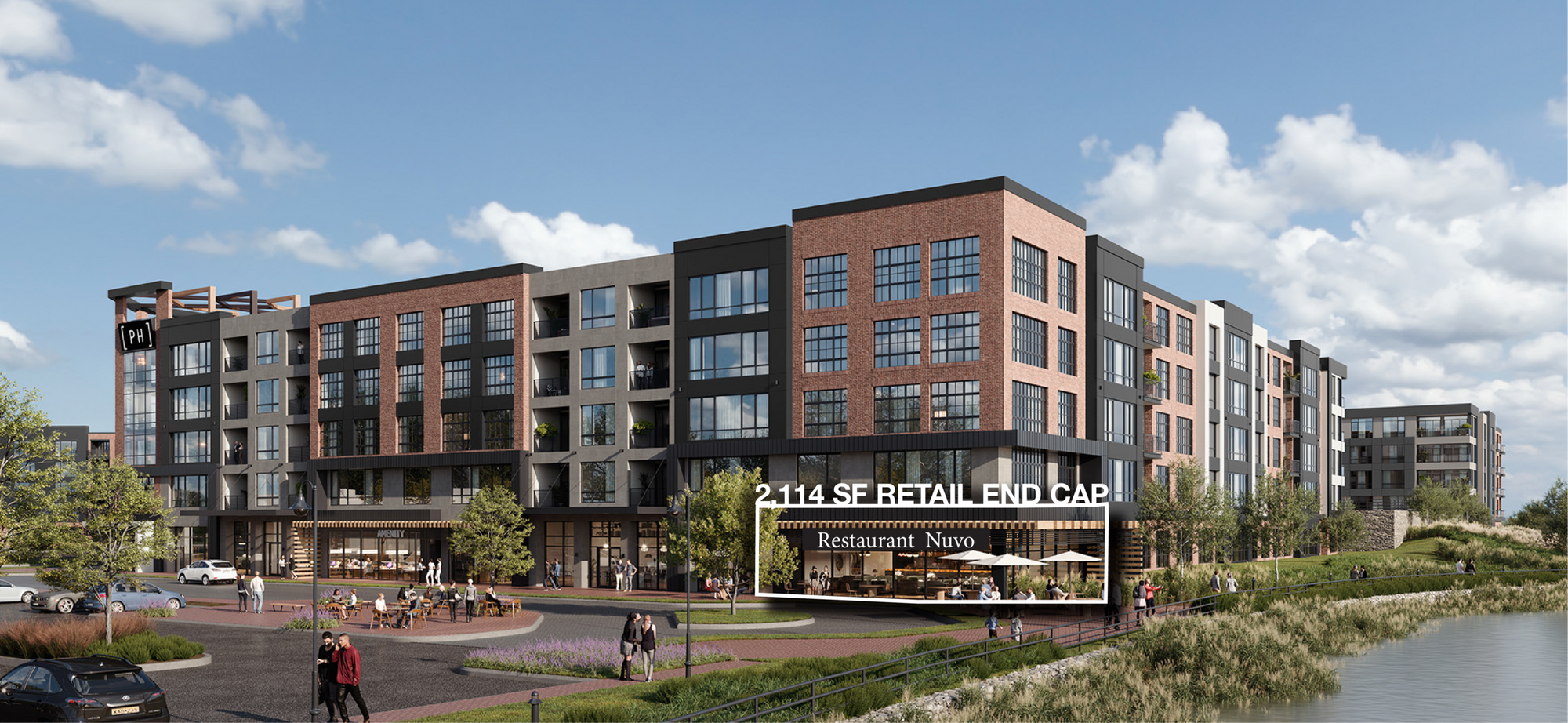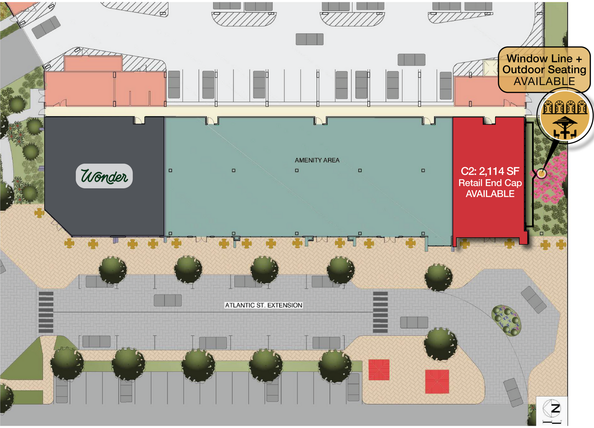 Retail end cap unit available in mixed-use residential building.