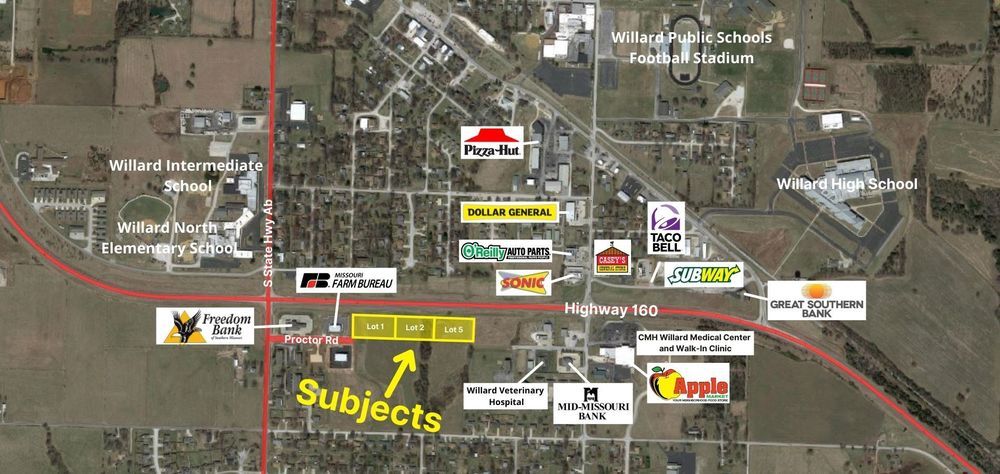 Commercial lots with high traffic exposure on Highway 160.