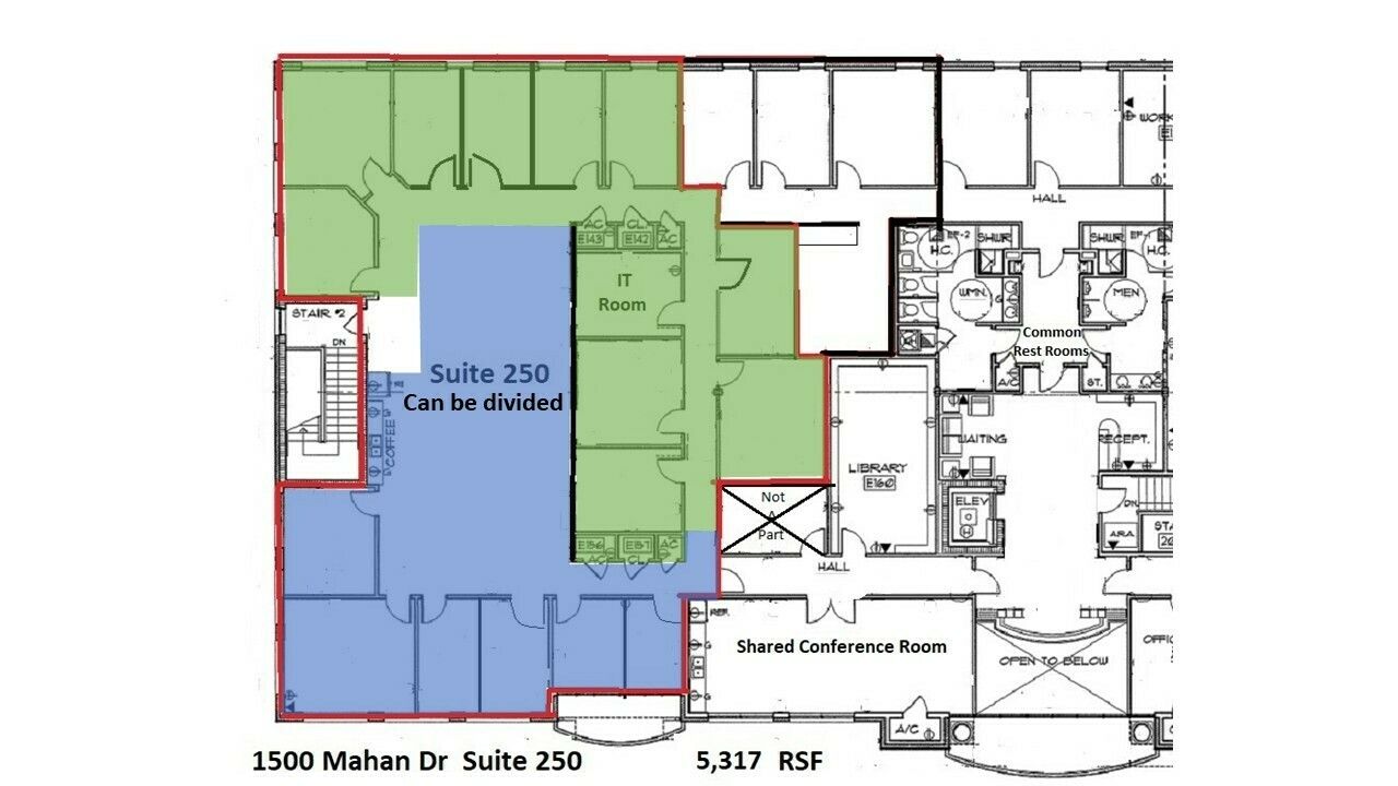 Class A office building with multiple suites for lease.
