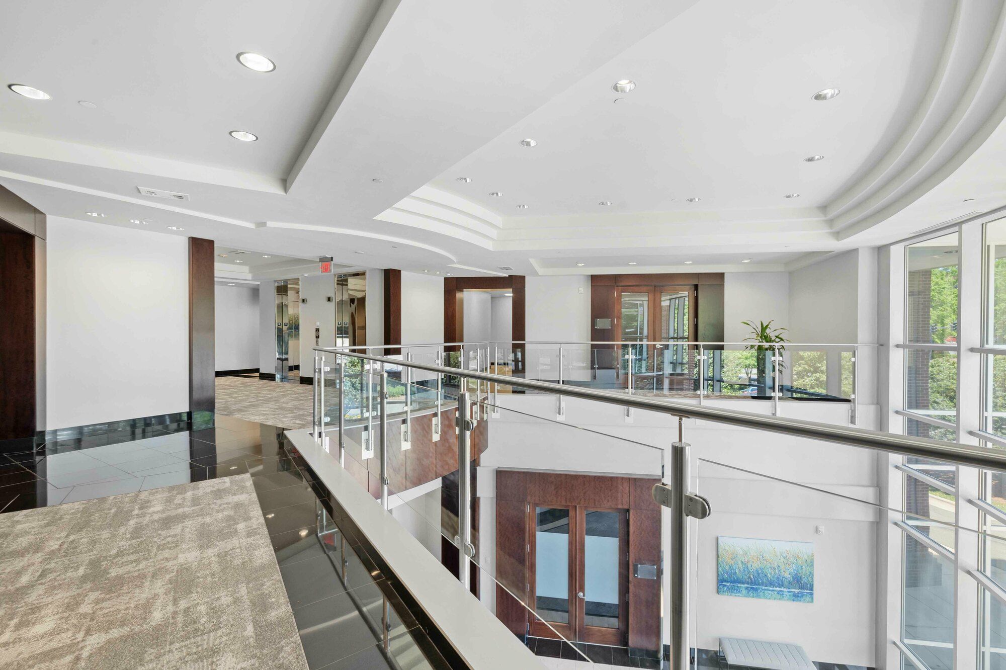 Three-story Class A office building in corporate park setting.