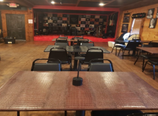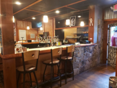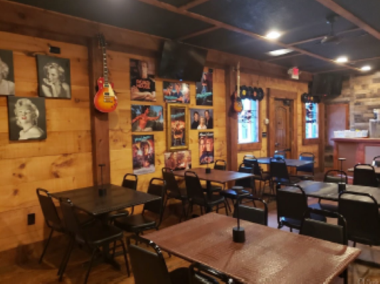 Restaurant and bar with stage, dance floor, and apartment.