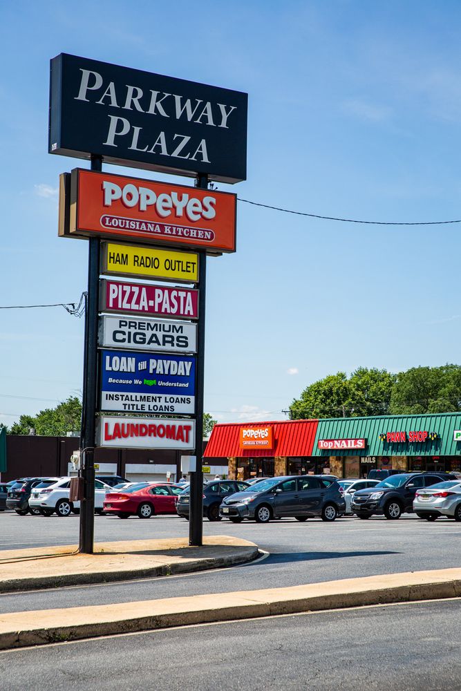 Retail space available in high-traffic Parkway Plaza.