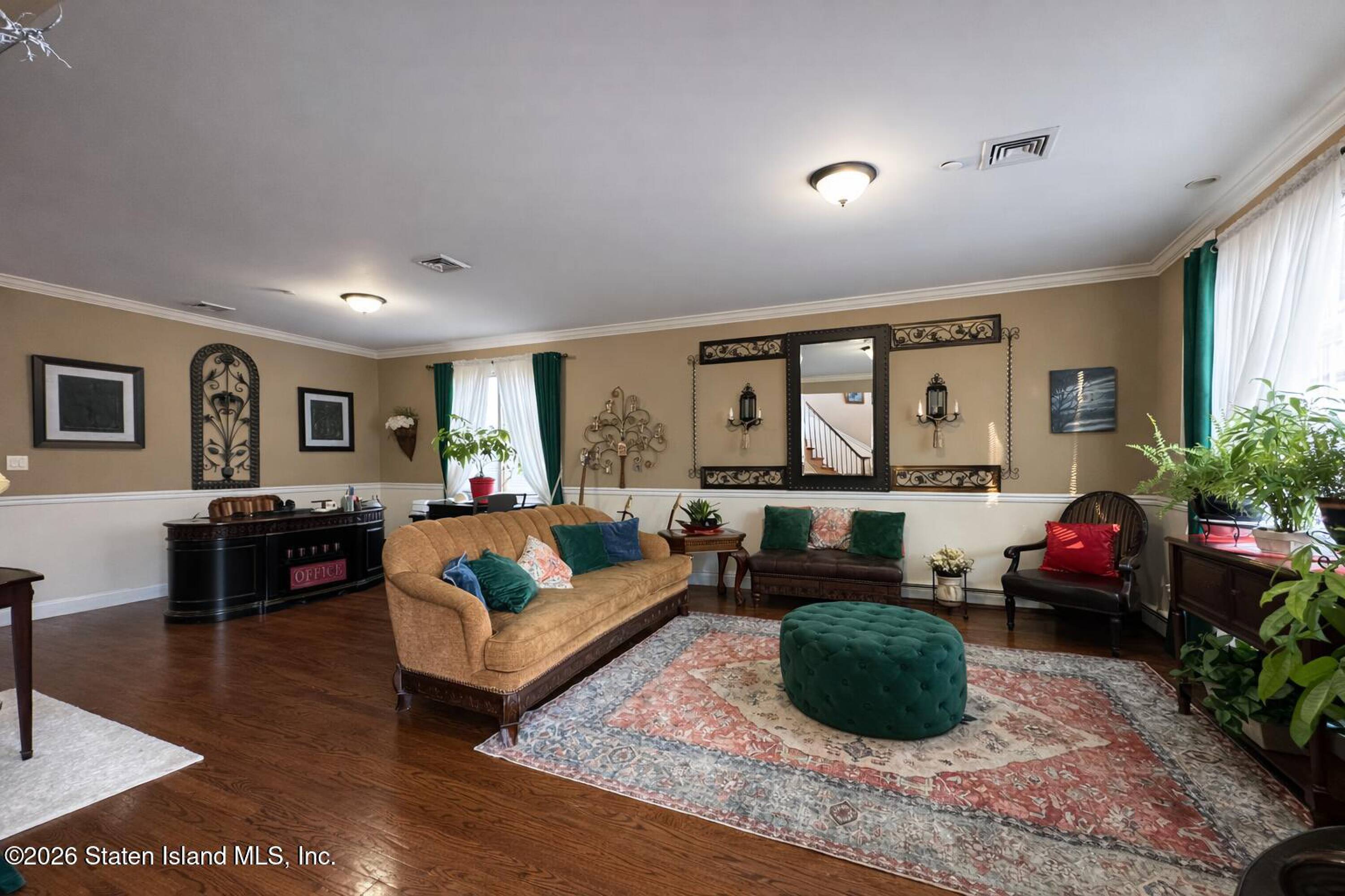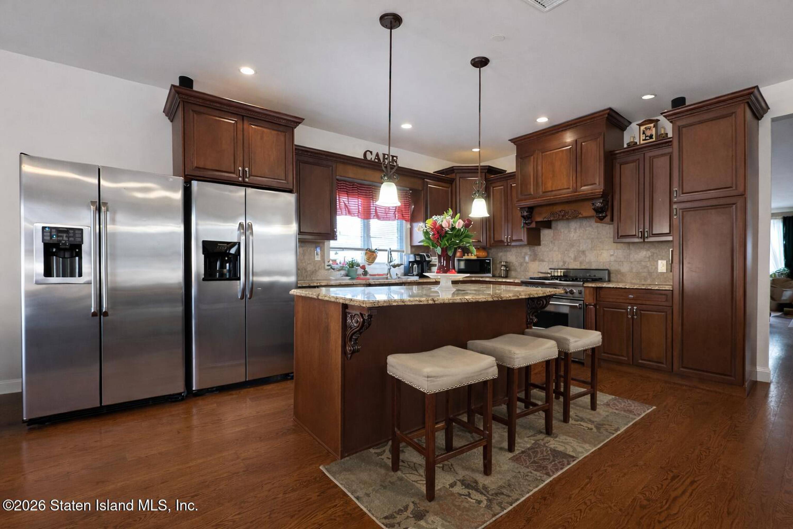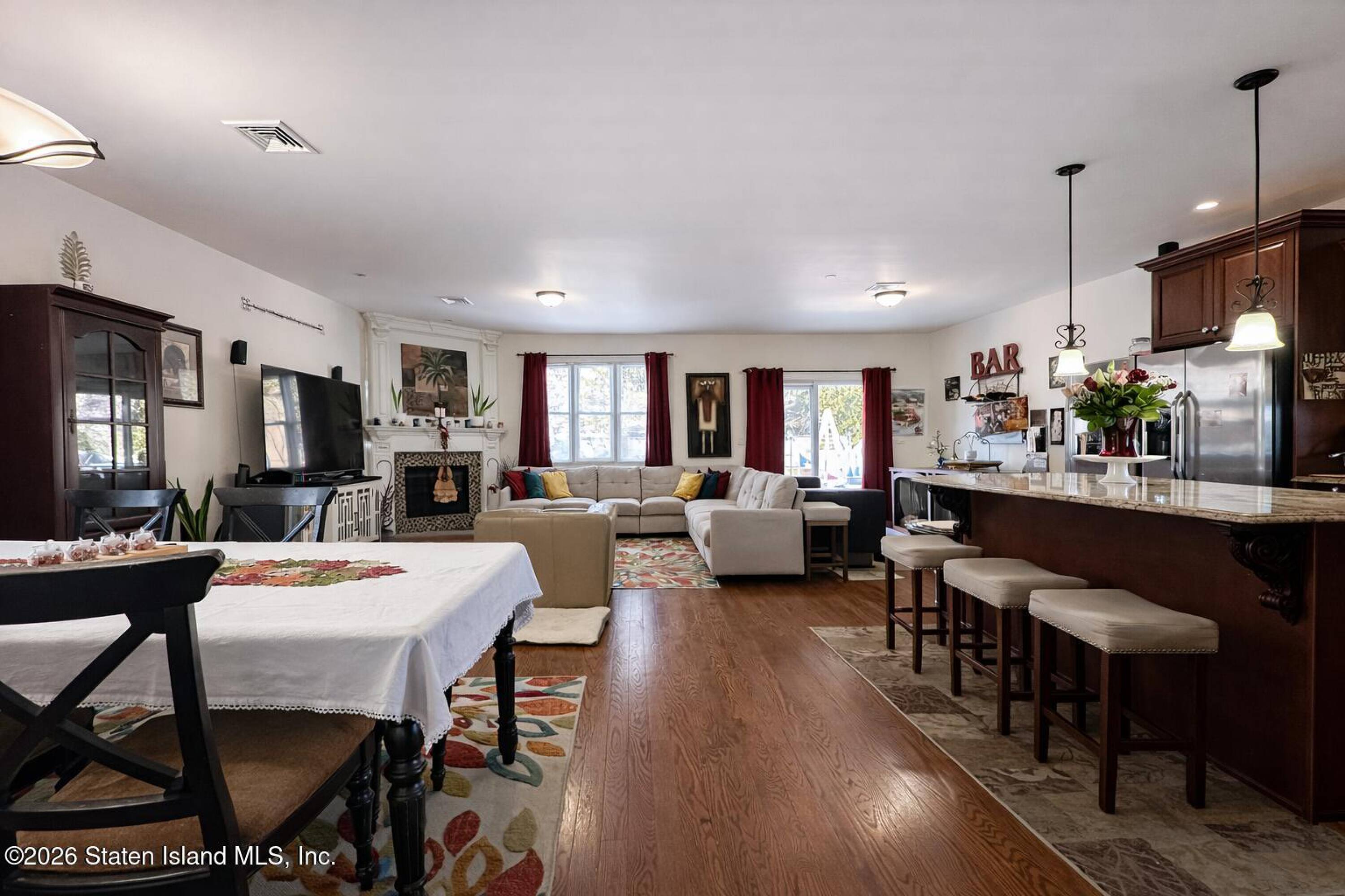 This fully detached legal two-family side hall colonial is located in Princess Bay. The property features 6 bedrooms and 5 bathrooms. Hardwood floors are present throughout the bright and spacious home. The grand entry includes an elegant staircase, leading to formal living and dining rooms. The large eat-in kitchen is equipped with stainless steel appliances and flows into the family room, which includes a fireplace. Direct access to the wood deck backyard and swimming pool is available from the family room. The second floor includes a primary suite with a walk-in closet and private bath, as well as additional generously sized bedrooms and a full bath. The basement includes utilities and an income-producing apartment. A detached garage is included, with parking available for up to 8 vehicles in the driveway. The property is conveniently located near transportation, shopping, parks, restaurants, and everyday amenities. The property size is 2674 square feet.