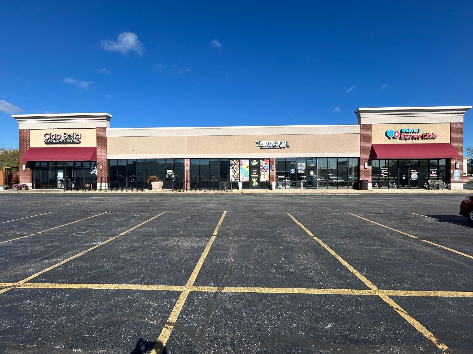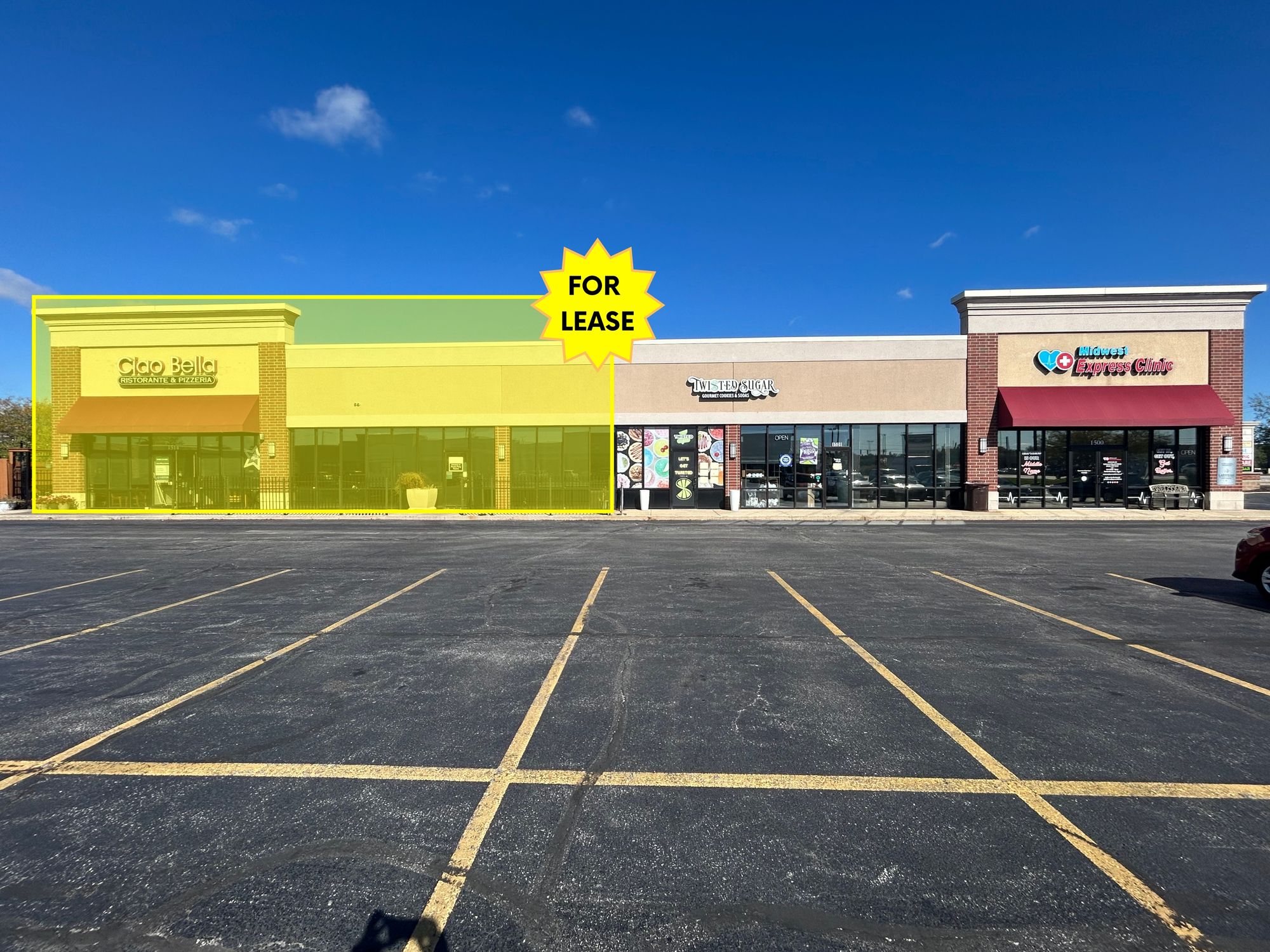 Restaurant and retail spaces for lease in Schererville, Indiana.