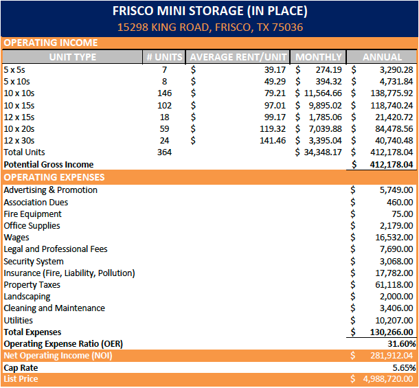Frisco Mini Storage Opportunity