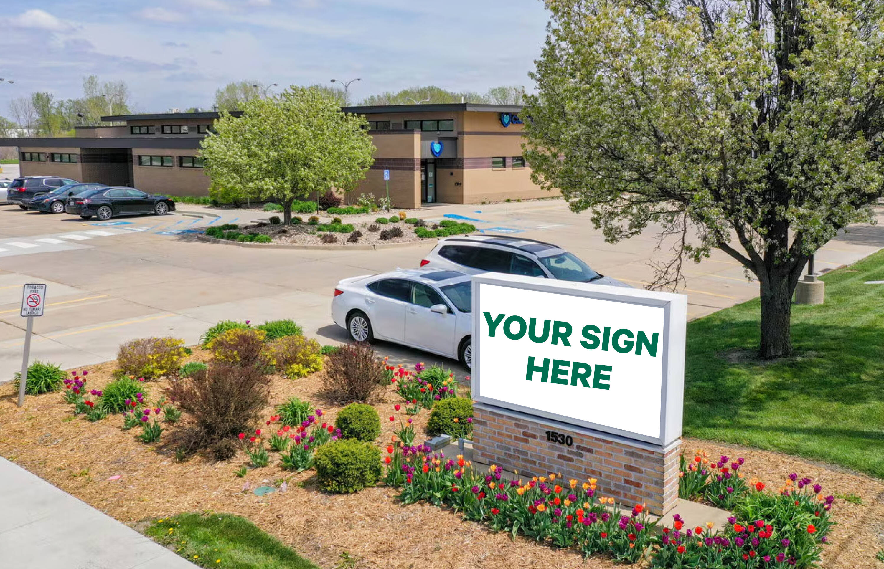Medical office building with on-site parking in high-traffic area.