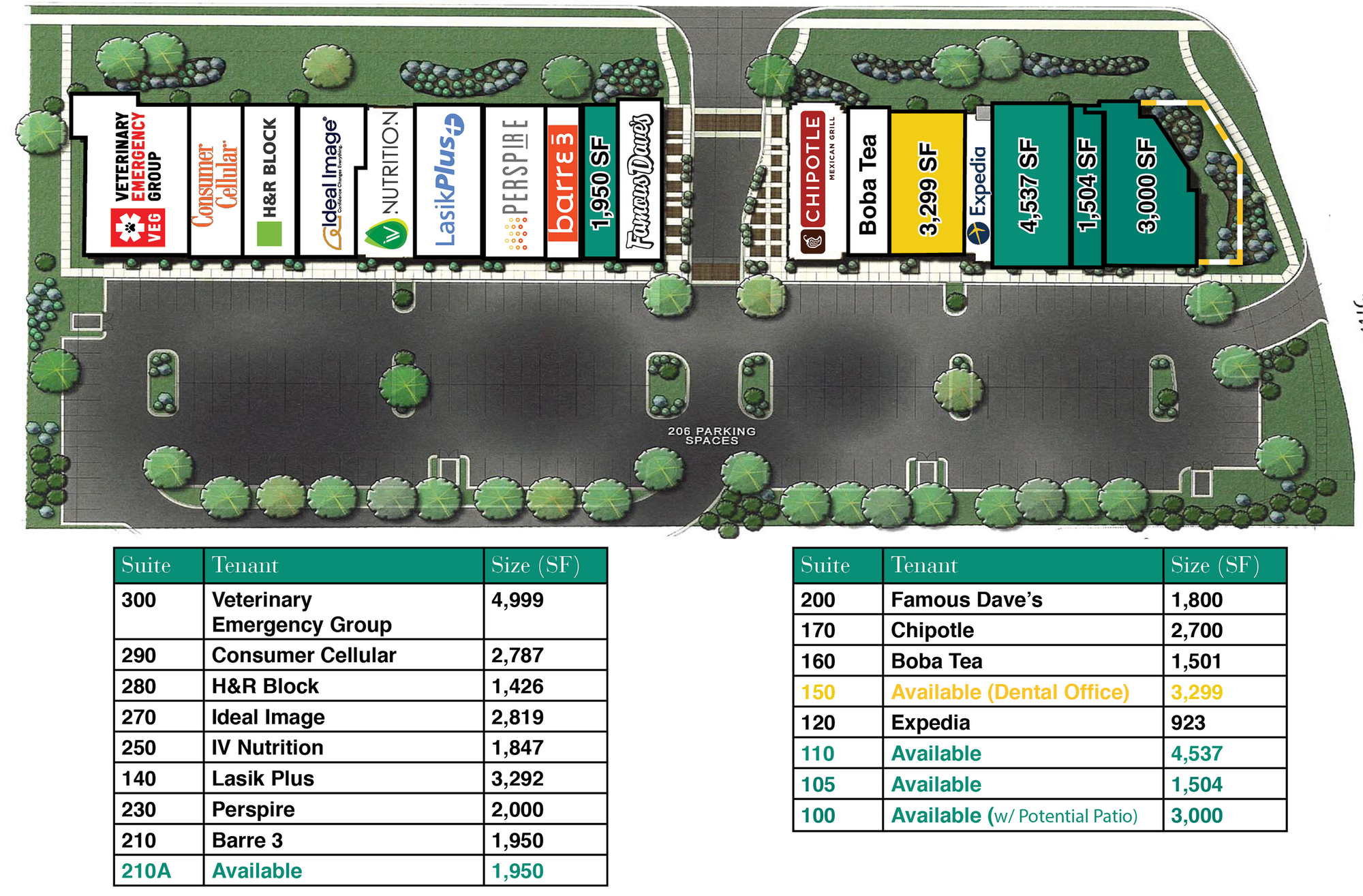 Well-positioned shopping center with high visibility and multiple access points.
