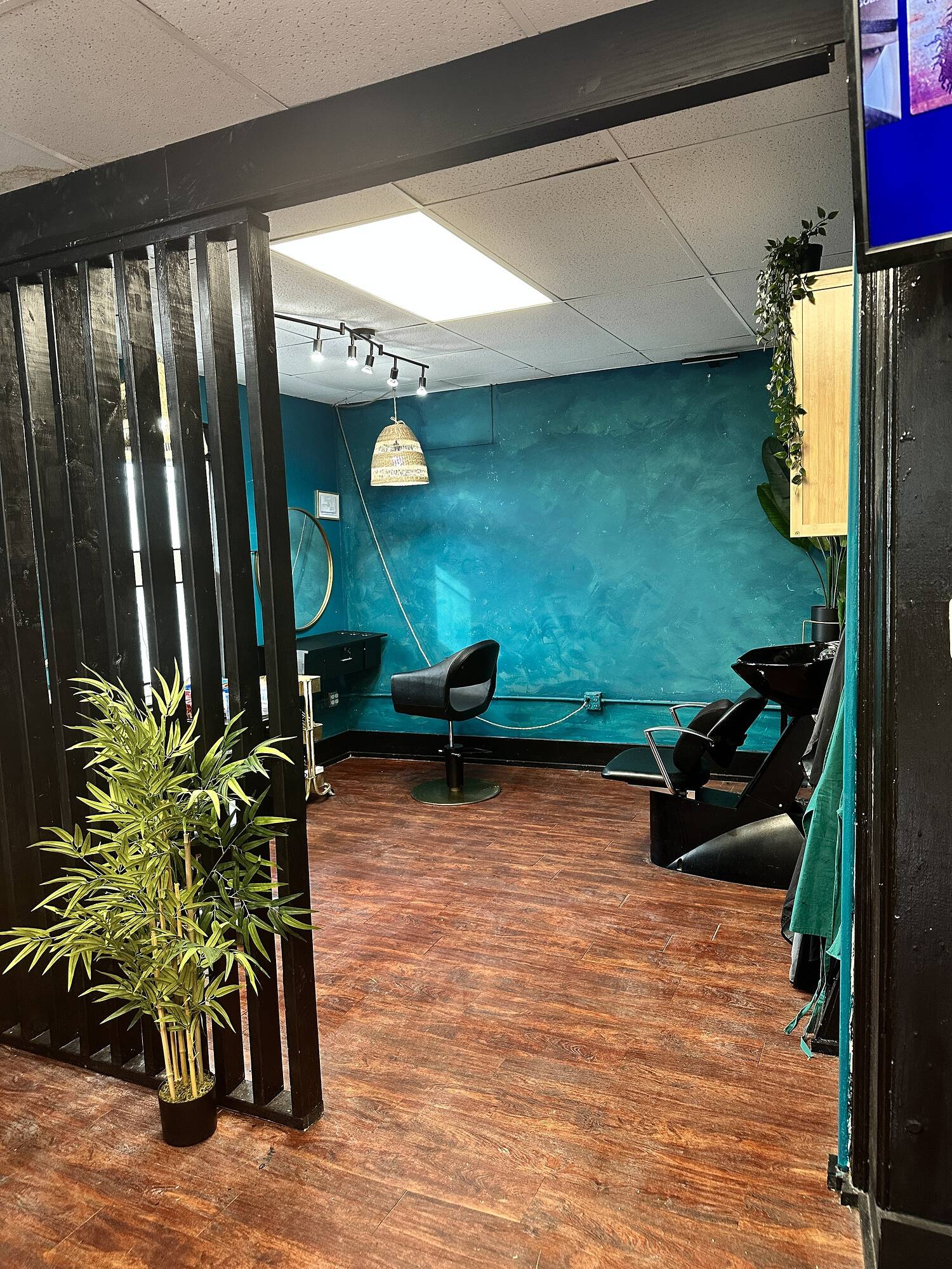 Salon space available for lease on a high traffic corridor.