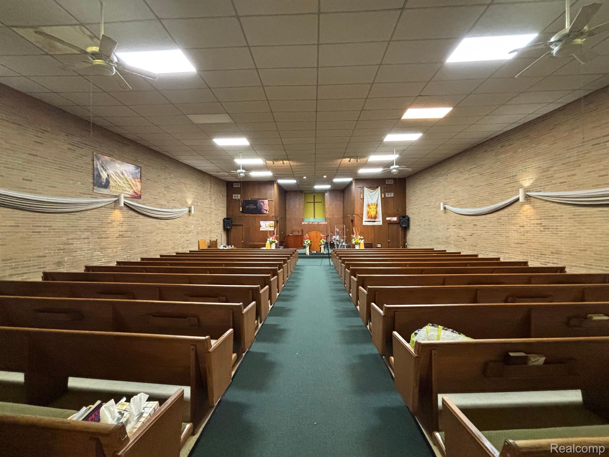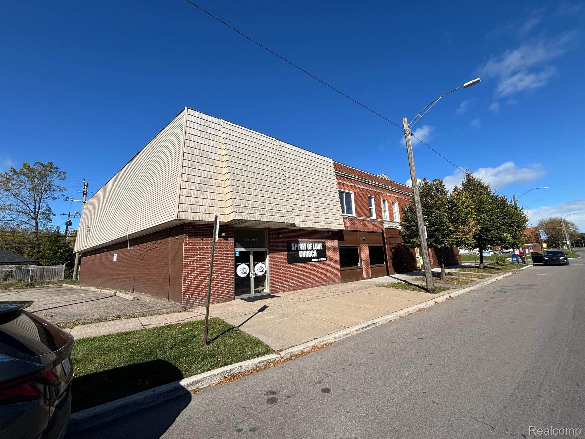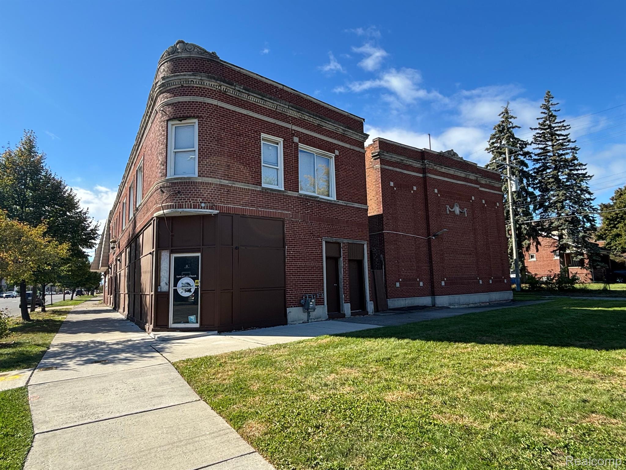 Multi-use building with church, storefronts, and apartments.