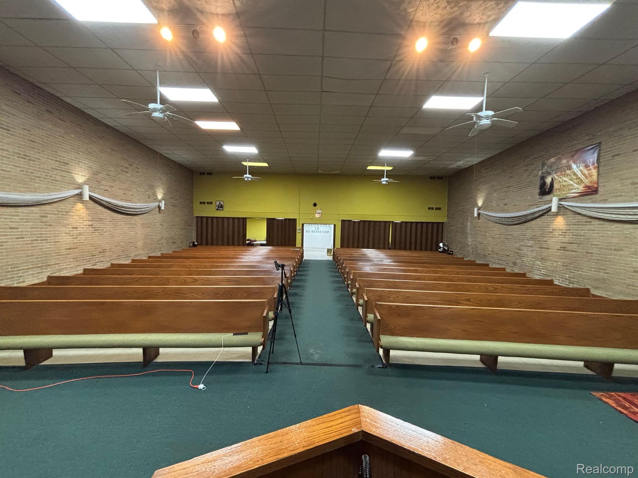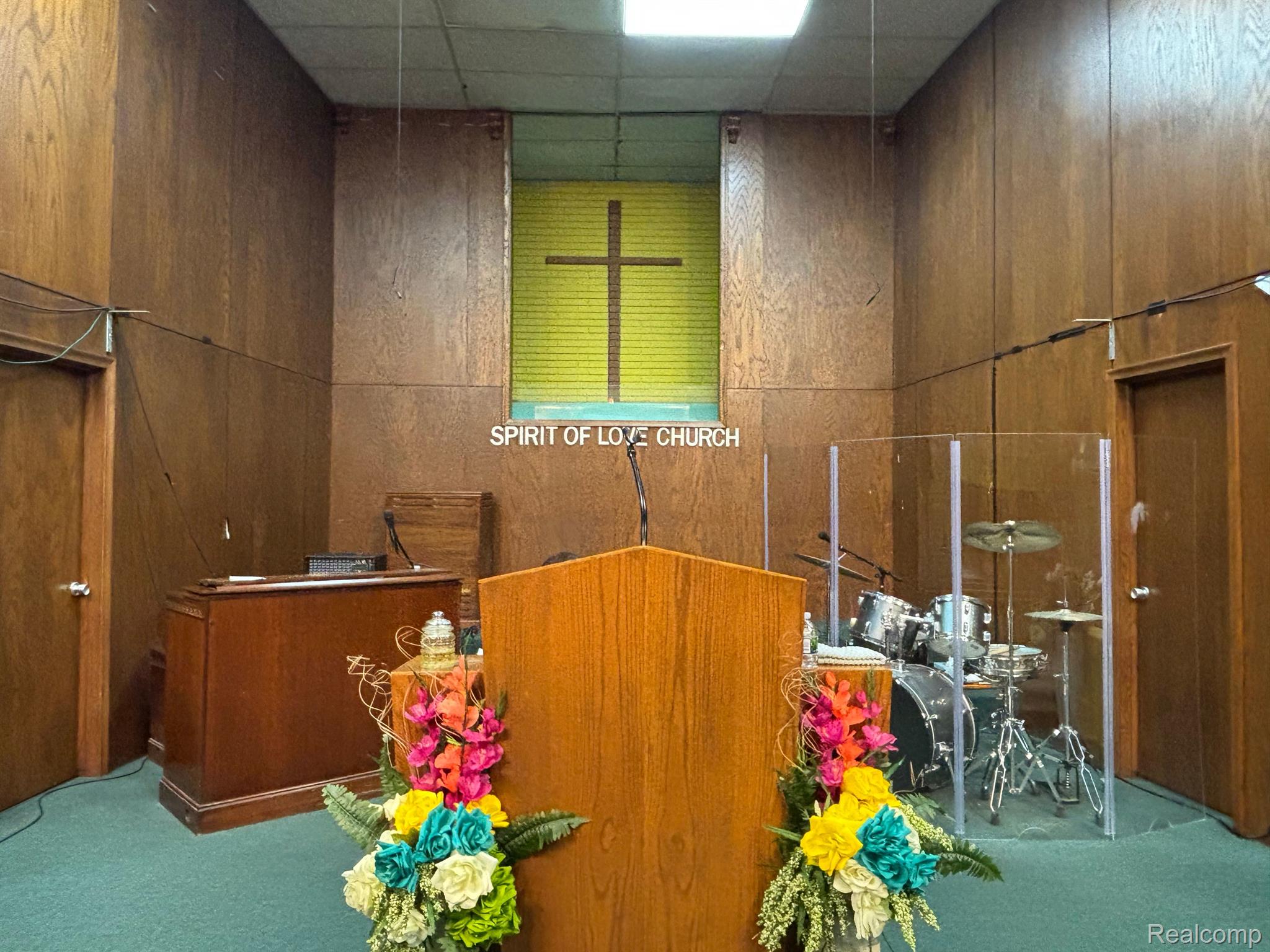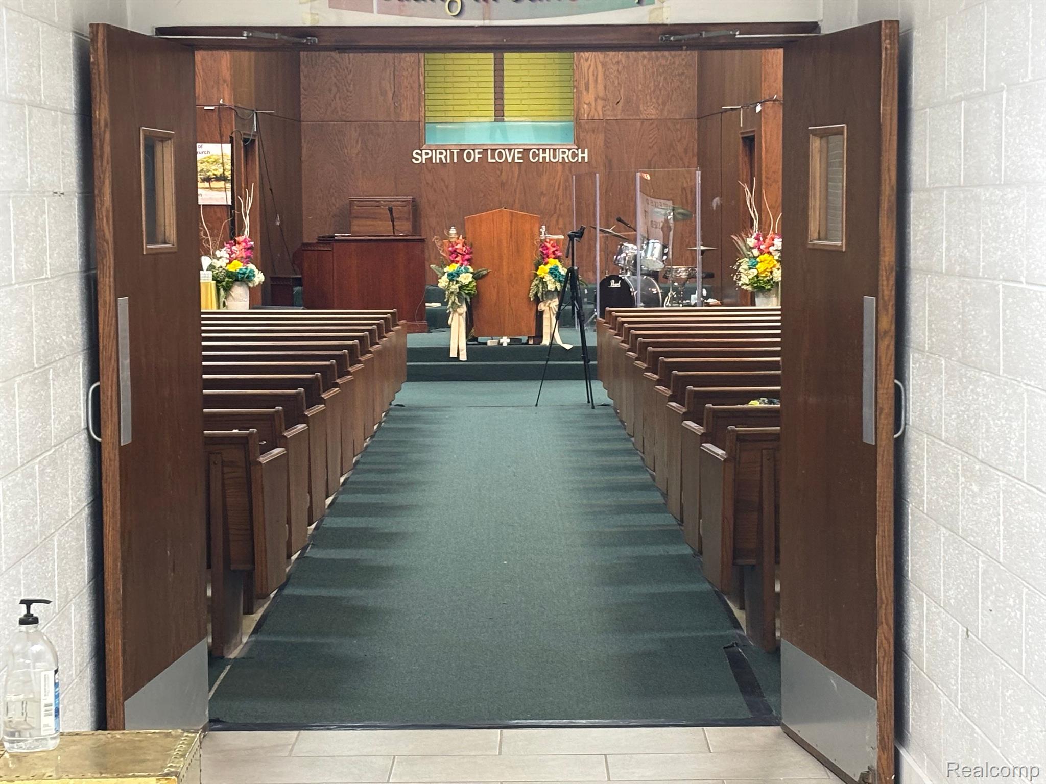 Multi-use building with church, storefronts, and apartments.