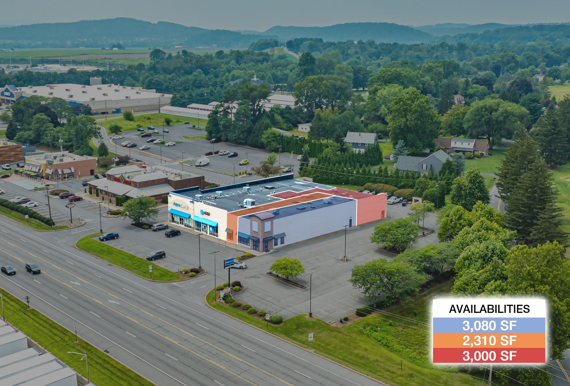 High-visibility retail and medical office space available for lease.