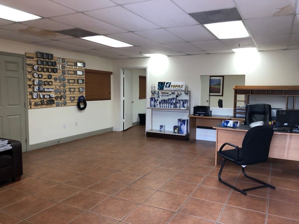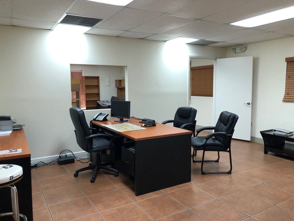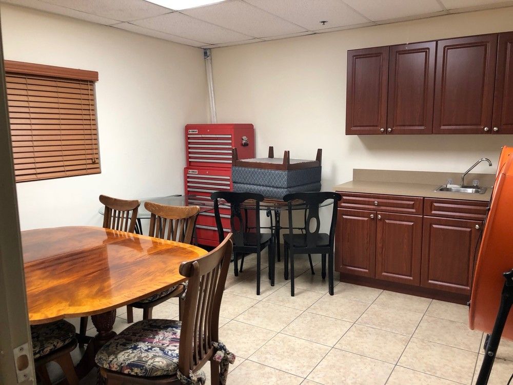 Sub-lease opportunity with showroom, office, kitchenette, and warehouse space.