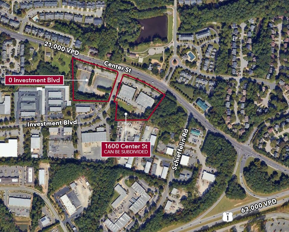 Commercial land with office/flex buildings for sale in Apex.
