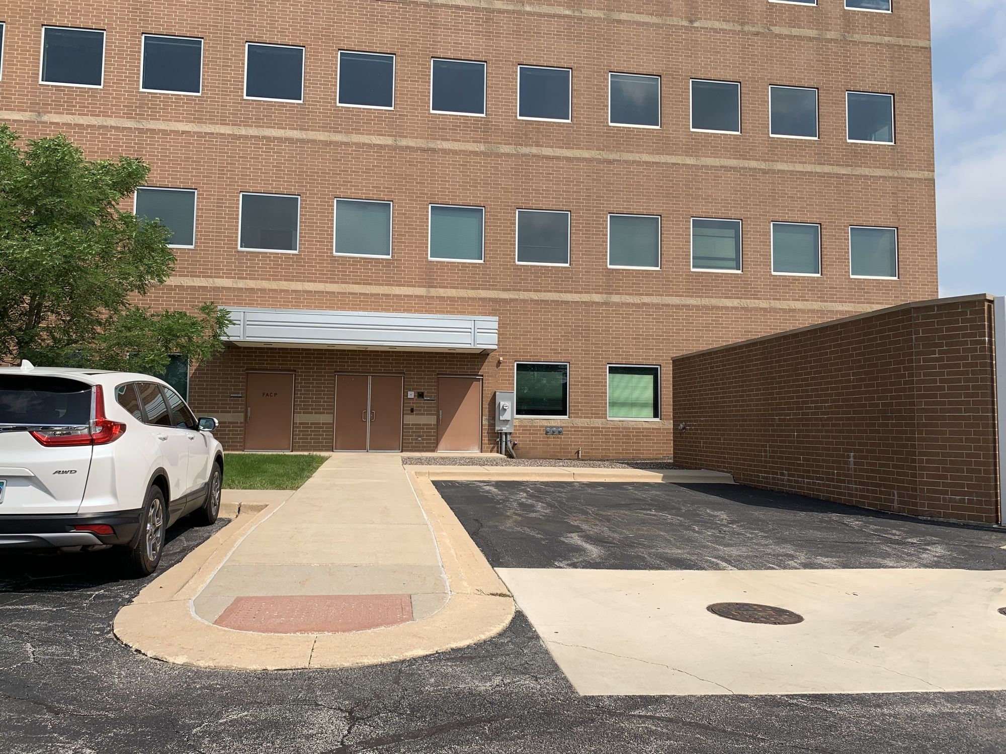 Four-story medical office building with modern finishes and abundant parking.