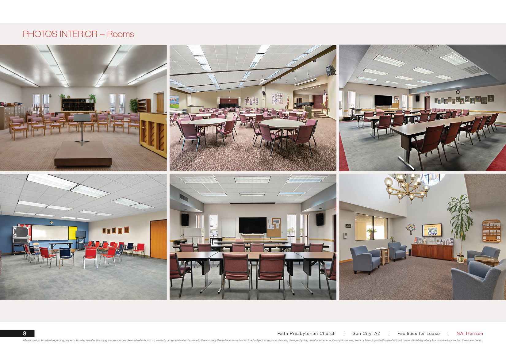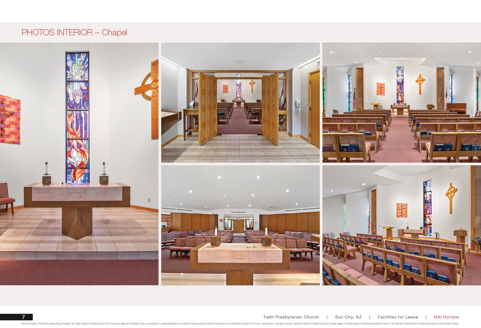World-class church facilities are available for lease in the Arrowhead submarket. Smaller space units are available and can be subdivided for lease spaces. The pristine property features ample parking, including select covered spaces. The exceptional interior floor plan includes like-new furnishings and carpets, including pews. The expansive and peace-filled campus-like setting includes varied classroom designs and a serene courtyard with a fountain. The interiors and improvements are like new, and three maintenance custodians keep the property looking exceptional. The sanctuary seats approximately 650 people and features exceptional sound and video capabilities. A variety of room types offer flexible use options, including office space if desired. A peaceful chapel seats 100-120 people and includes an adjacent grieving room. The large fellowship hall accommodates approximately 300 people, while a secondary fellowship hall accommodates 40-50 people. Electronic signage is available for lessee use. The property is located in an outstanding location in the Arrowhead submarket.