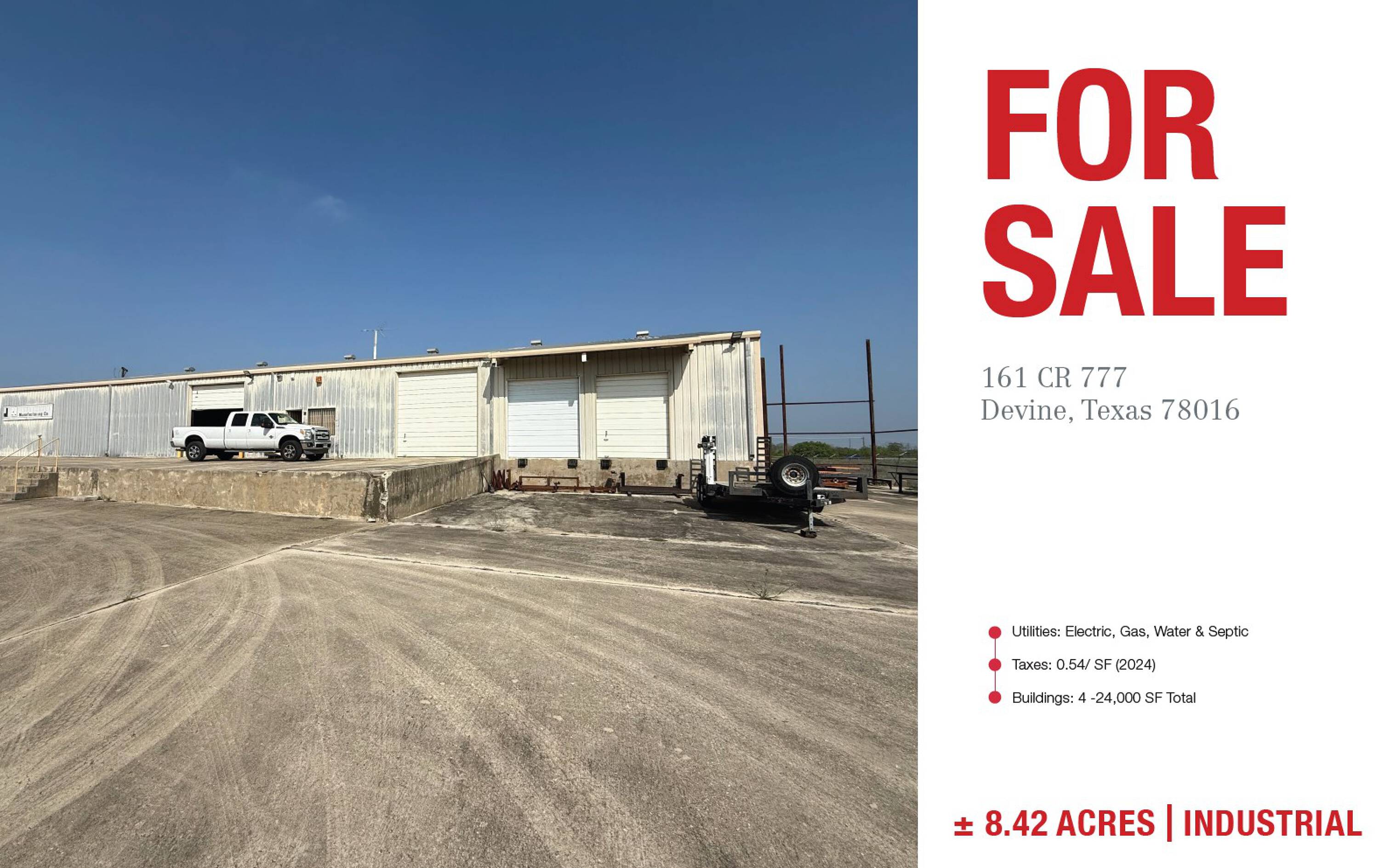 Four industrial warehouses with IH-35 visibility, 25 minutes to San Antonio.