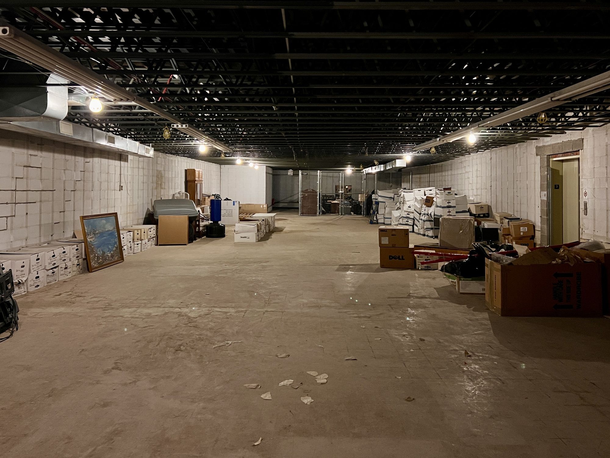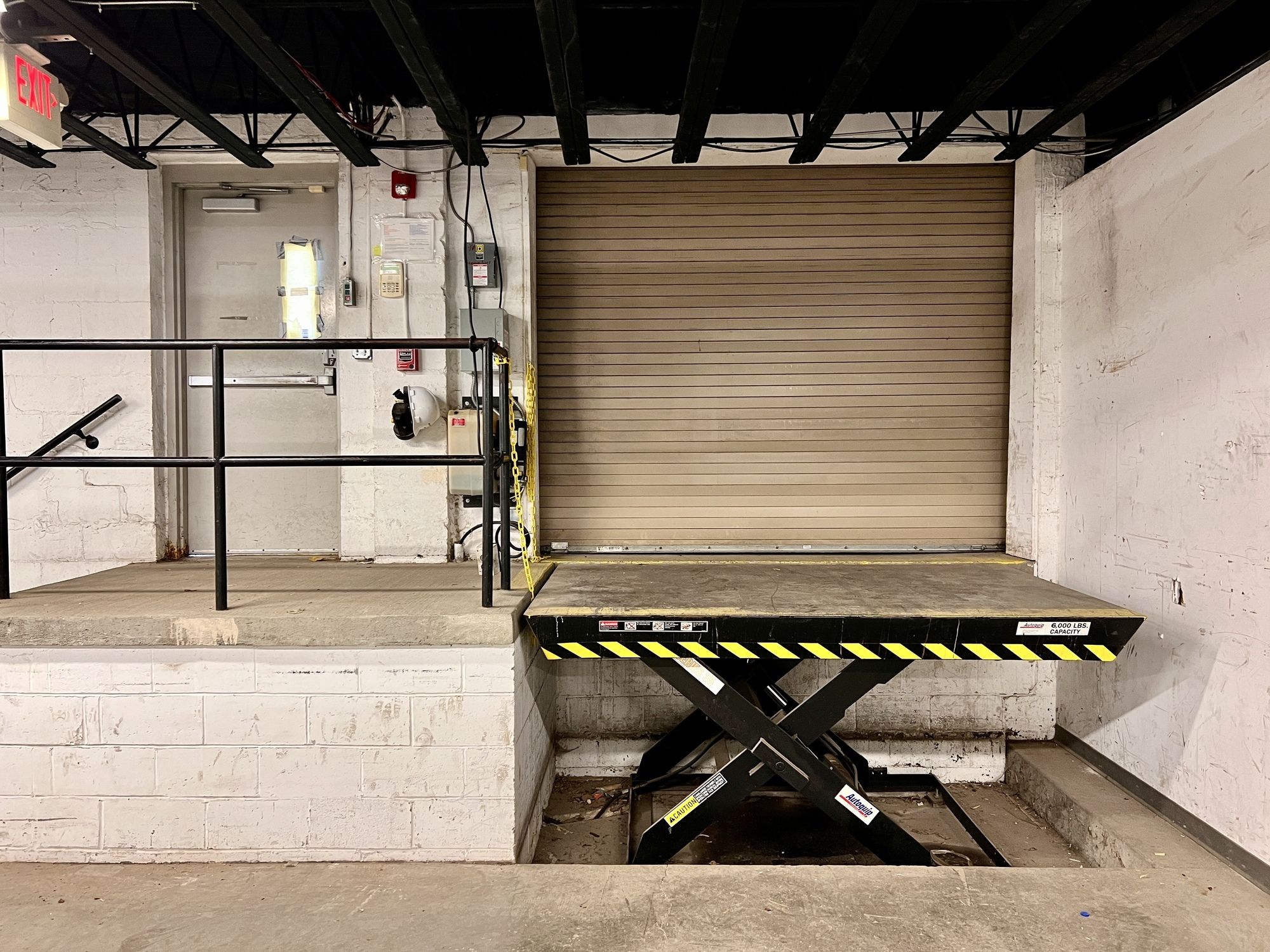 Three-level industrial property with warehouse, office, and parking.