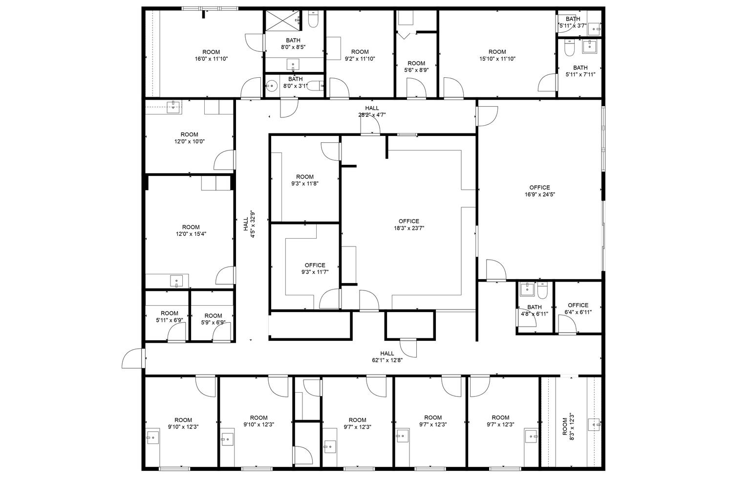 Spacious medical office near hospitals with ample parking.