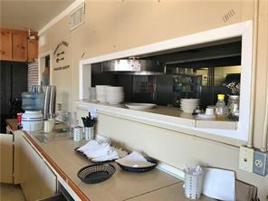 Restaurant with drive-through, equipment, parking, and highway visibility.