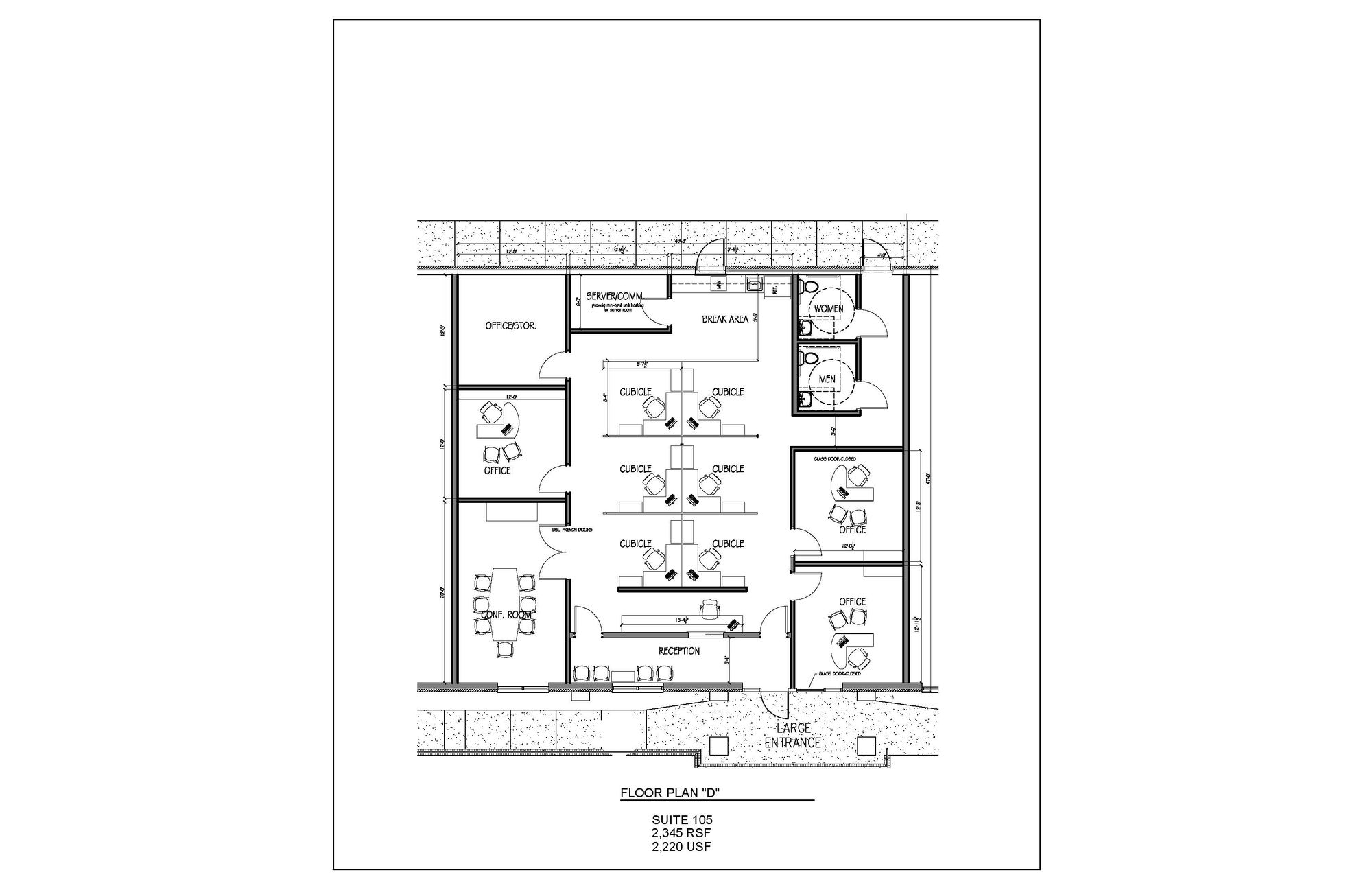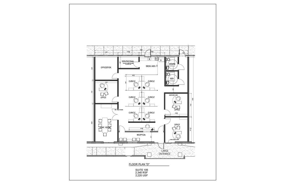 Office suite featuring private offices, conference room, and break room.