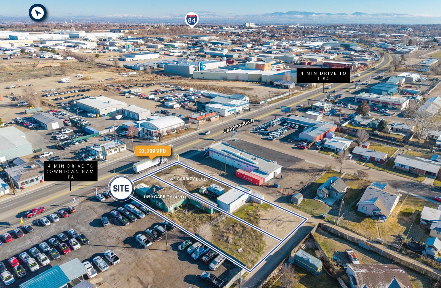 Commercially zoned land on high-traffic Garrity Blvd in Nampa.