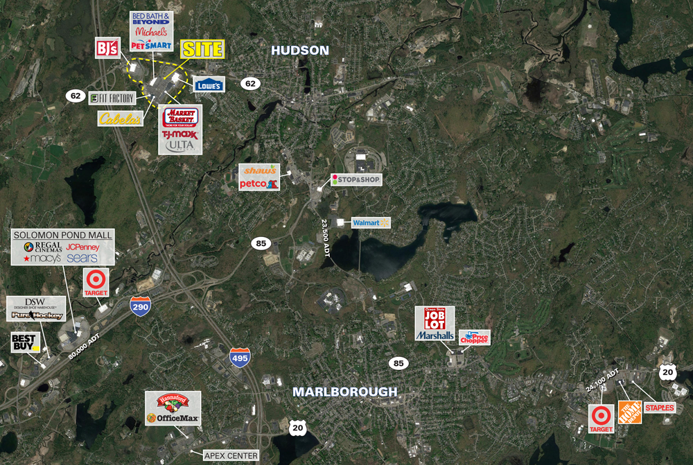 This property features: Premier power center with nearly 1M SF serving Central Massachusetts.; Located at I‑495 & Route 62.; High traffic counts: I‑495 boasts 105,810 ADT.