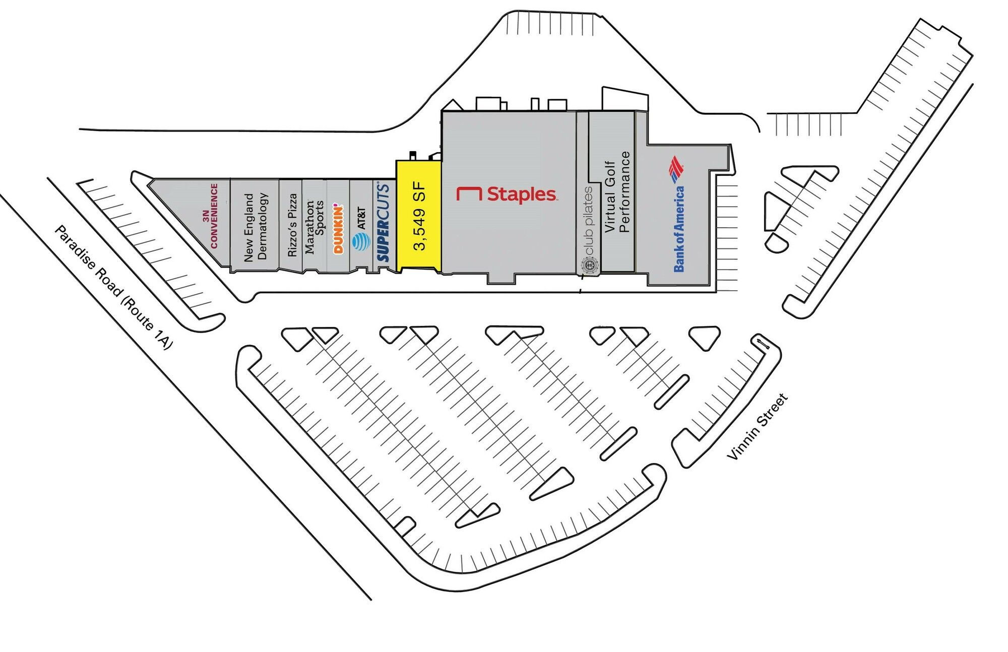 Located at the intersection of Route 1A and Vinnin Street in Vinnin Square, this retail space offers excellent parking and visibility. The property is located in a busy area and is near Staples, Supercuts, and Club Pilates.