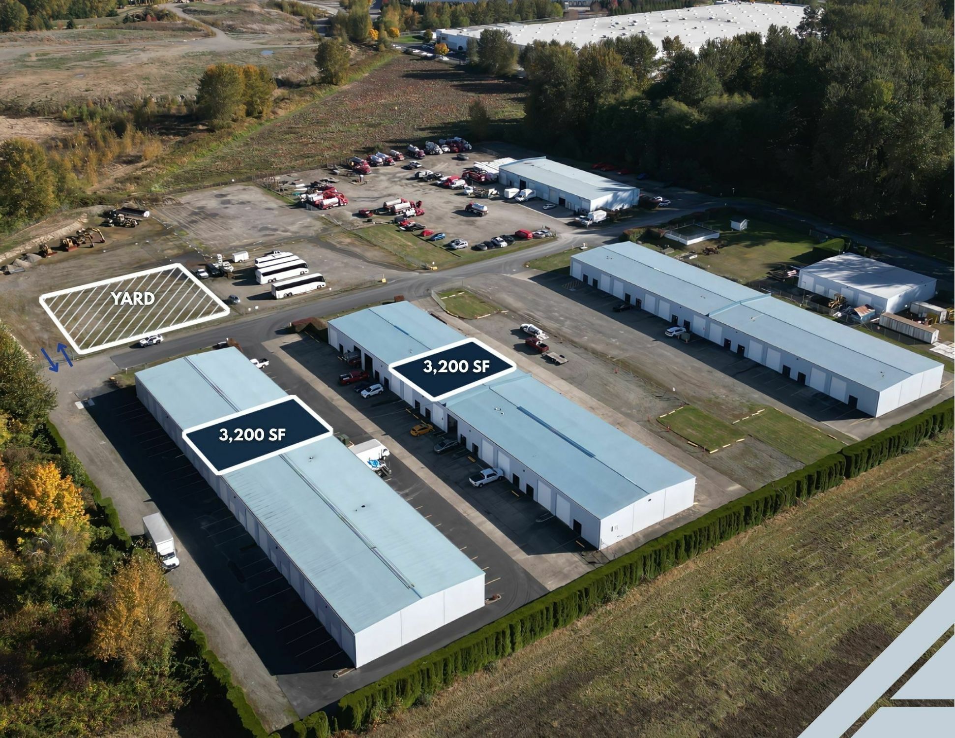 Industrial warehouse spaces and fenced yard in prime Puyallup location.