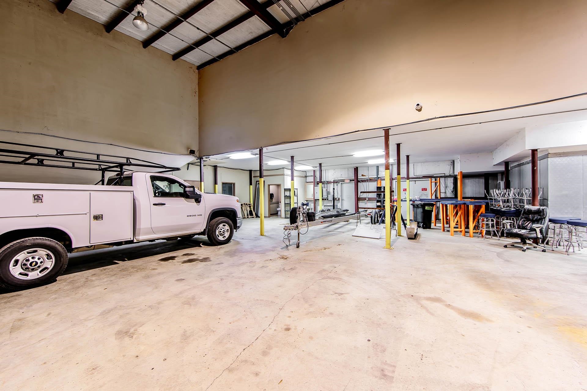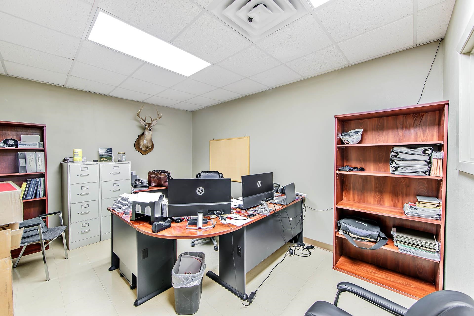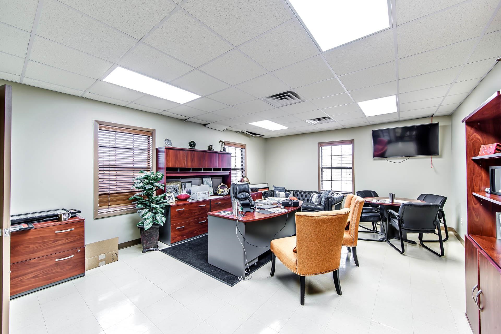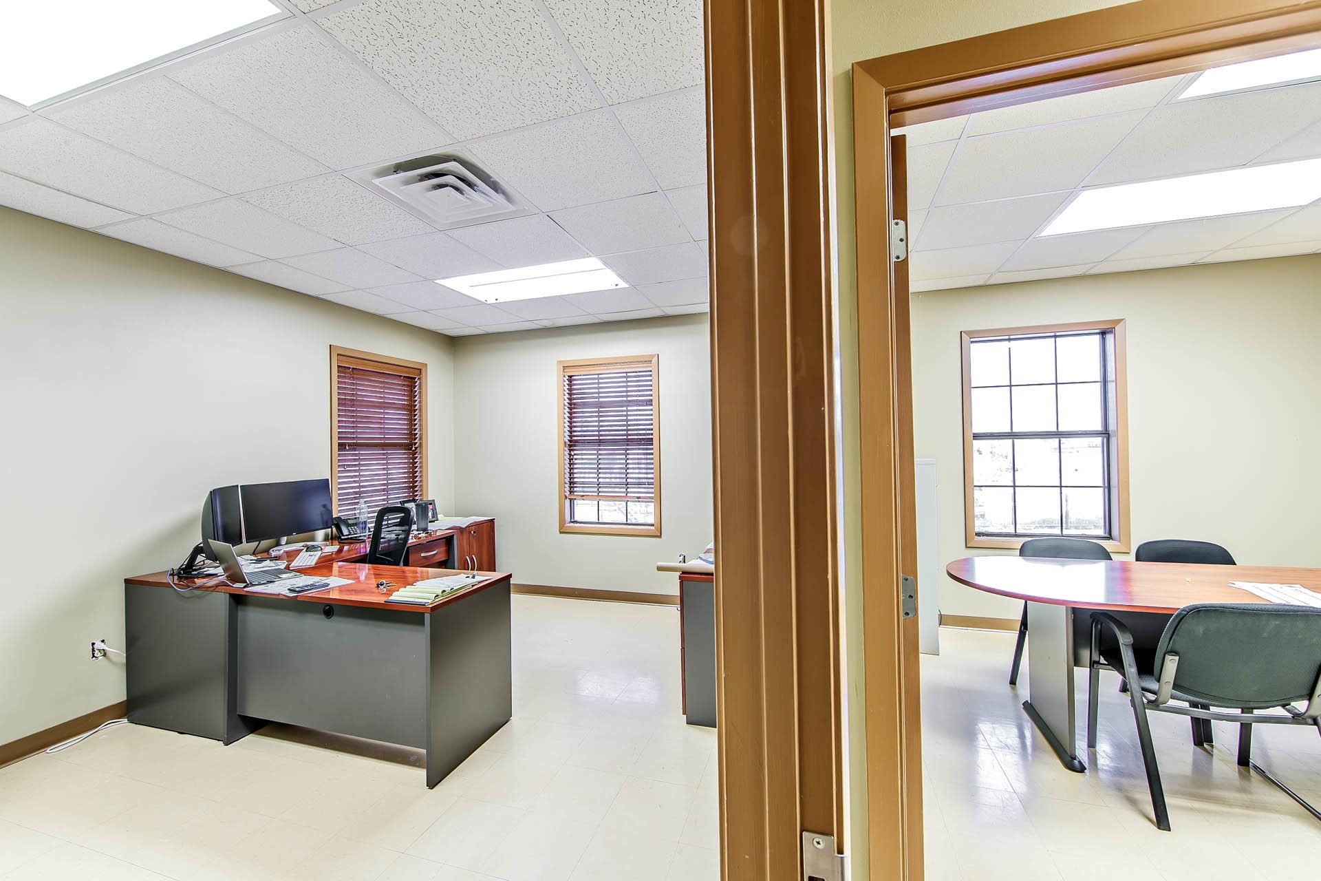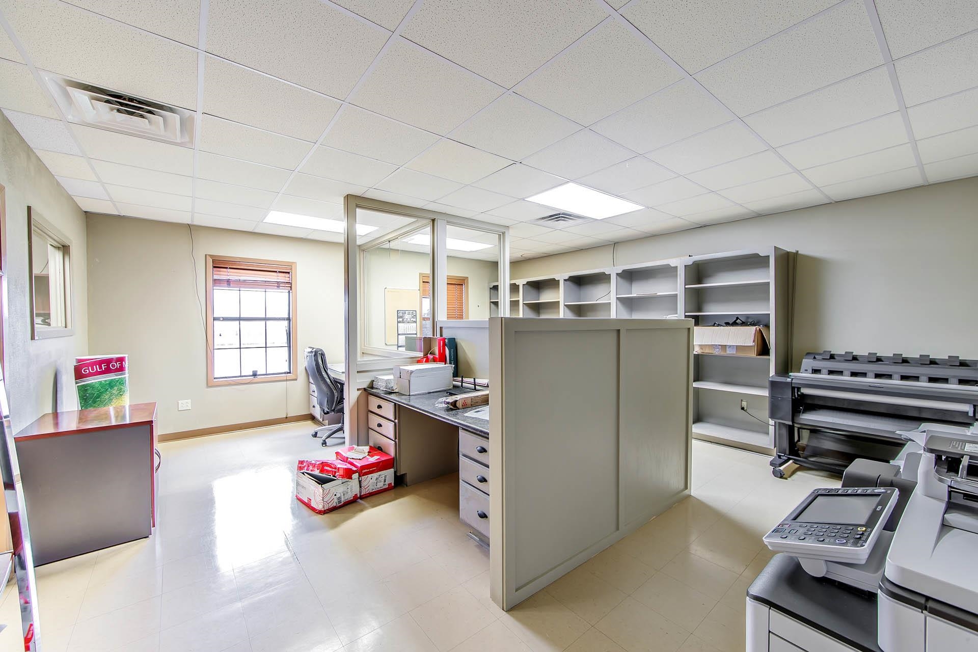 Well-kept commercial building with waterfront access and ample parking.