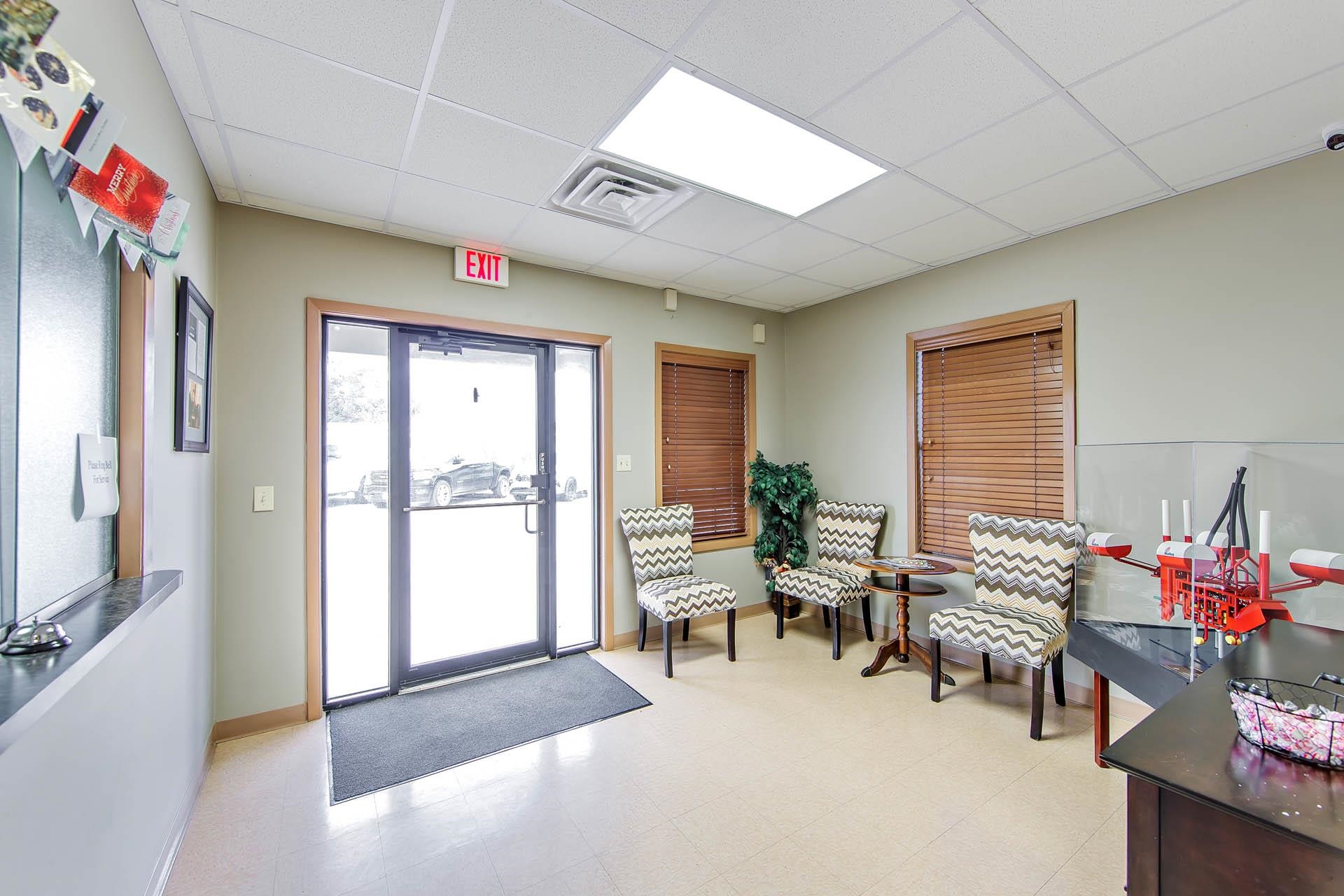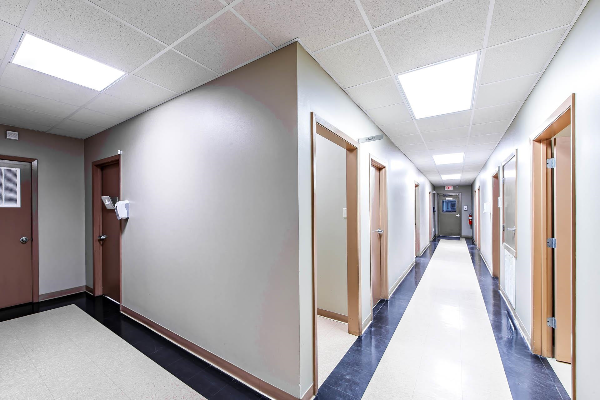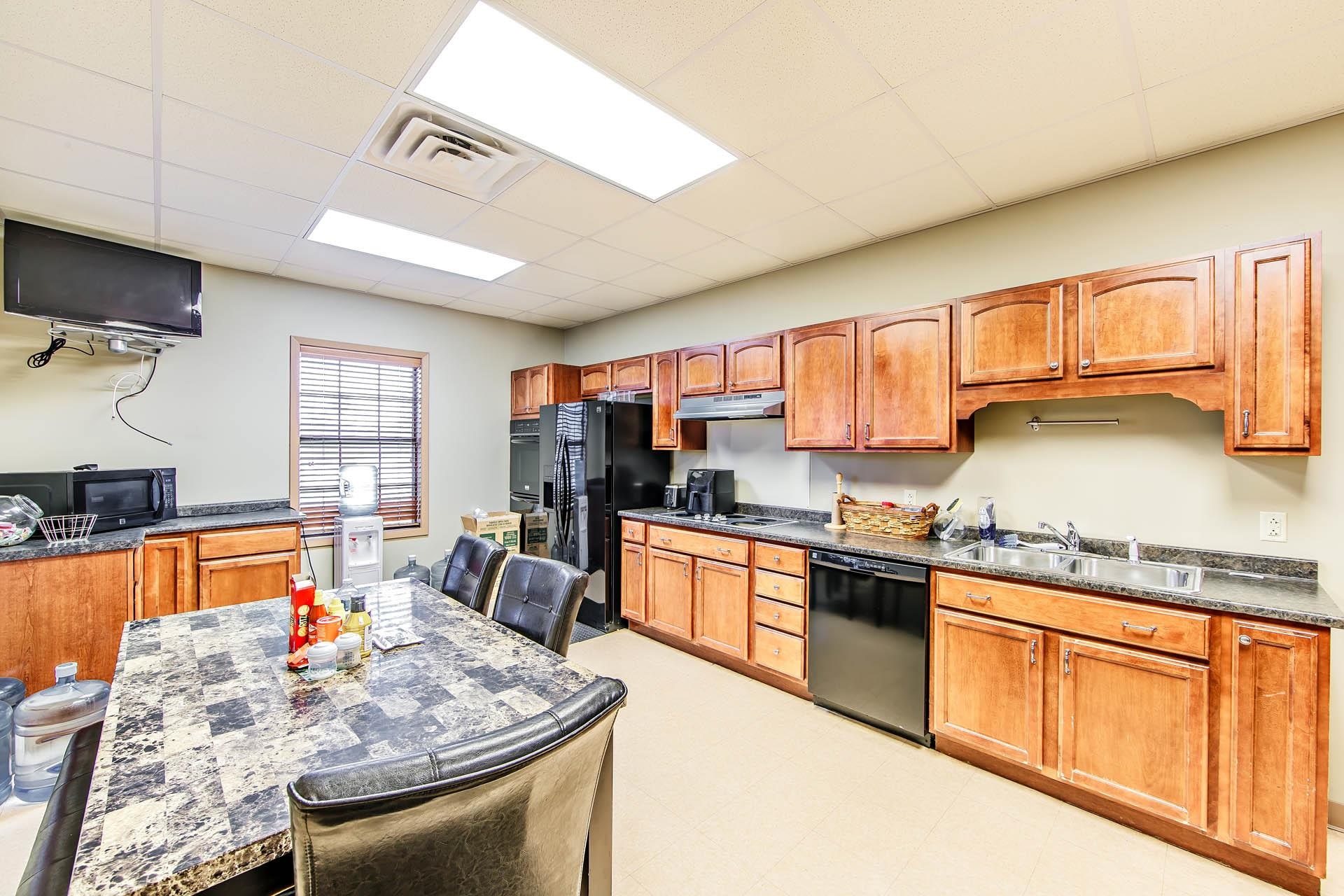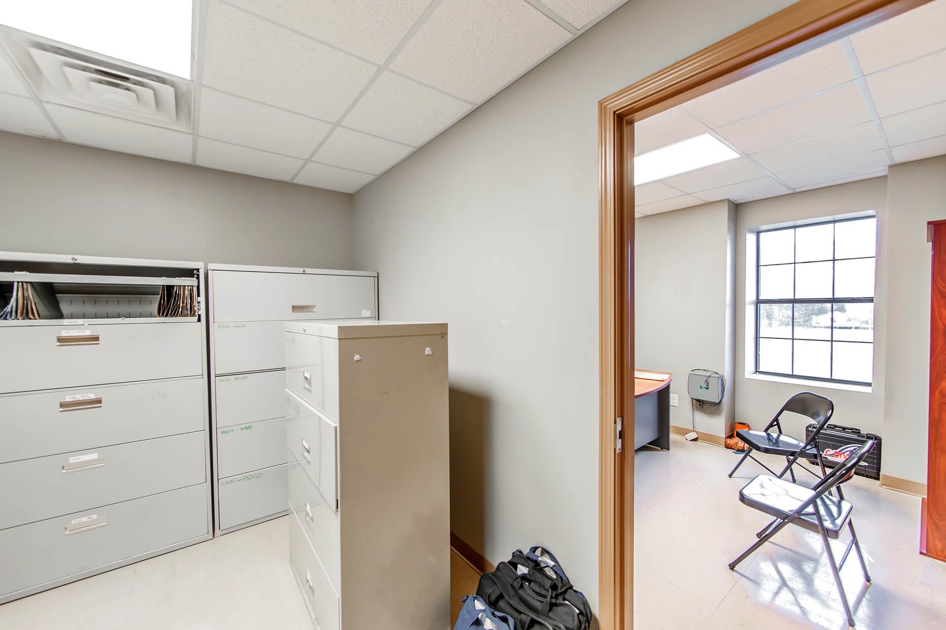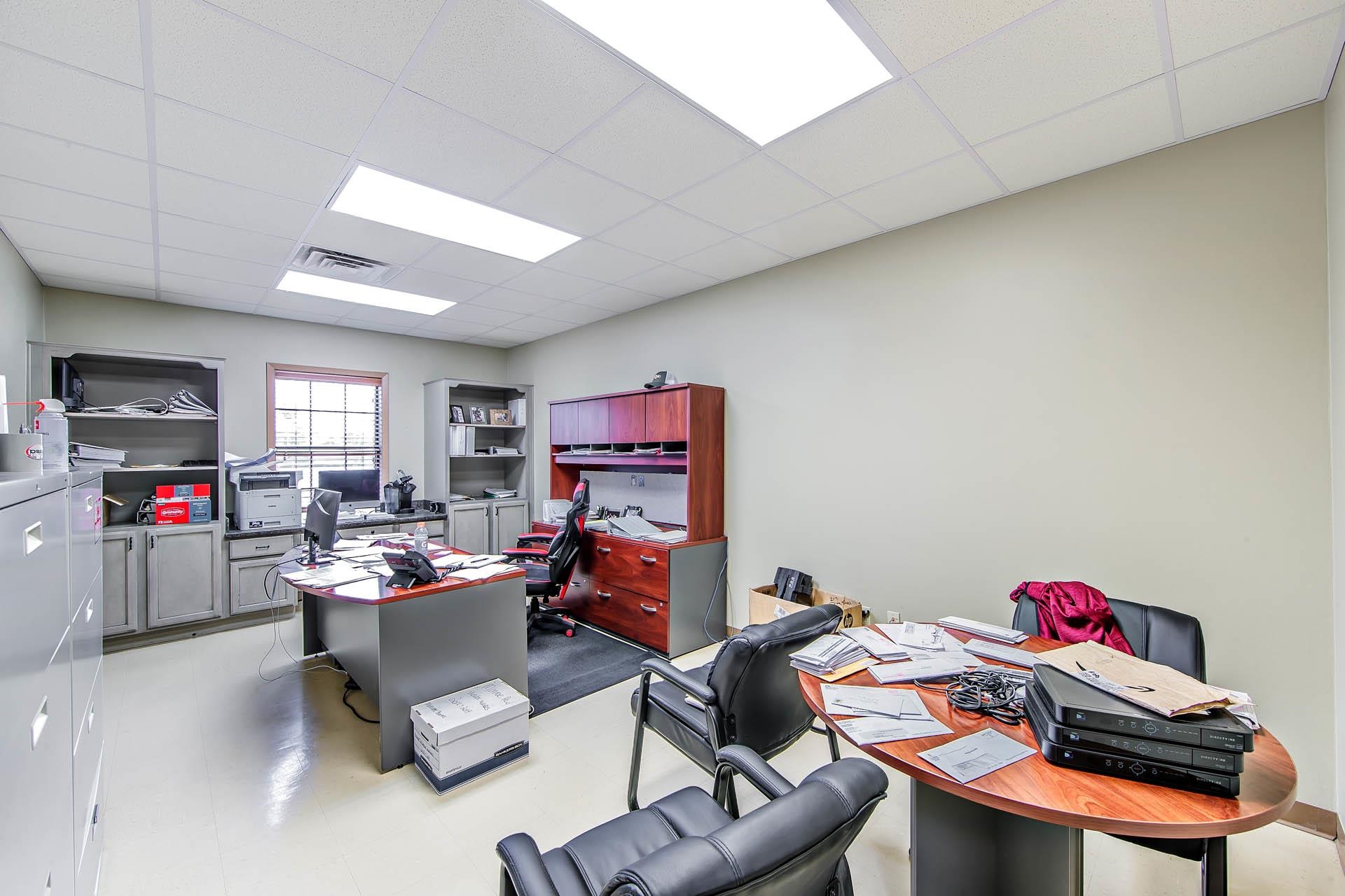 Well-kept commercial building with waterfront access and ample parking.