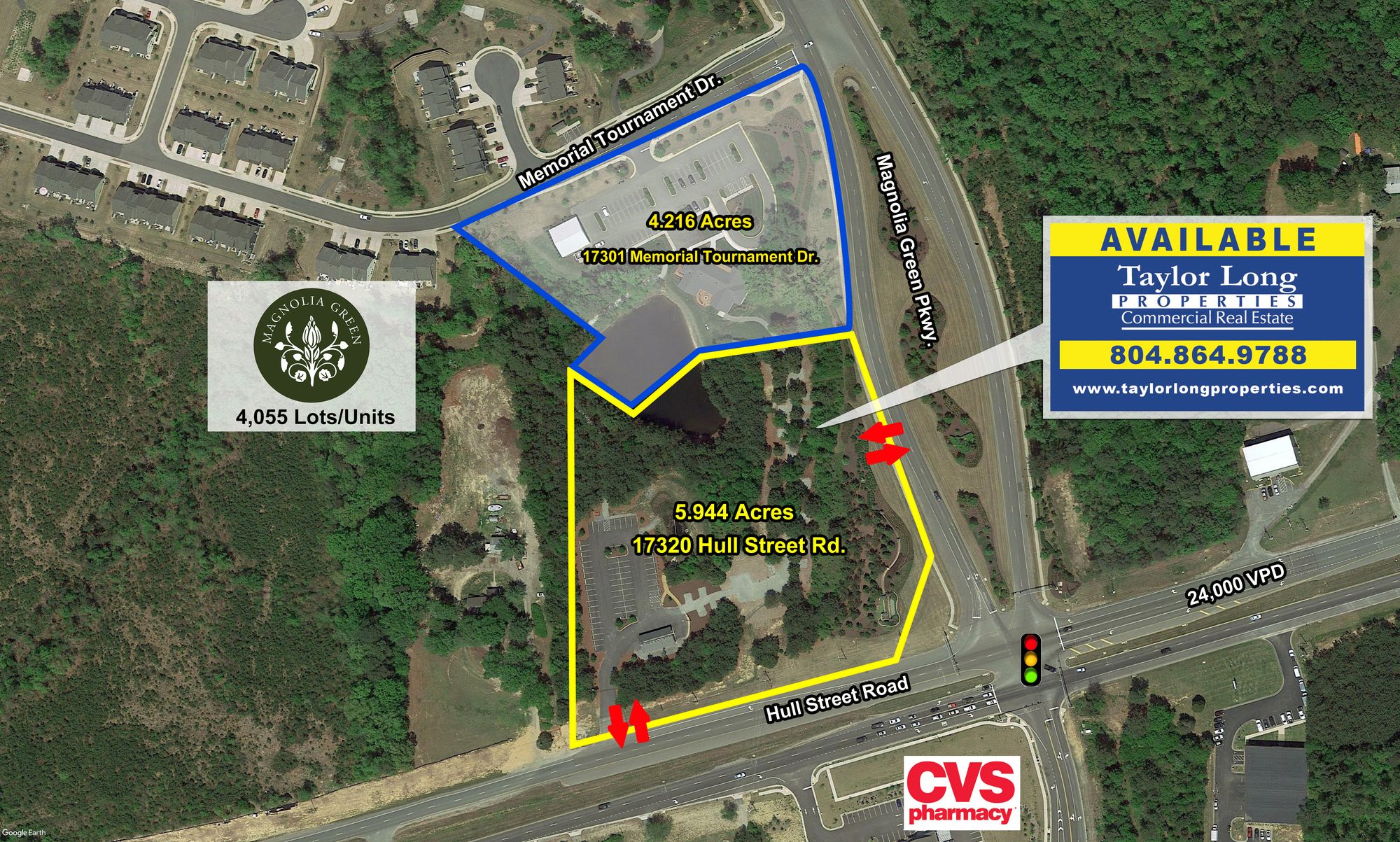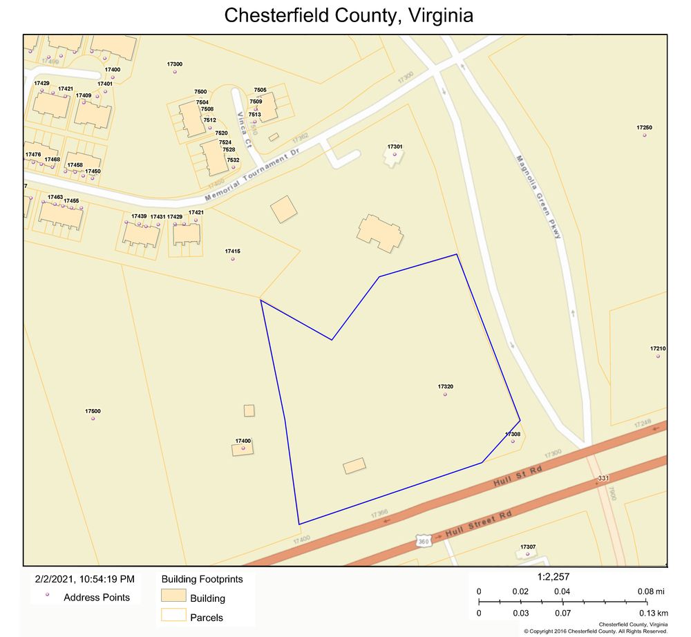 6.299 acres of commercial land with frontage on Hull Street Road.