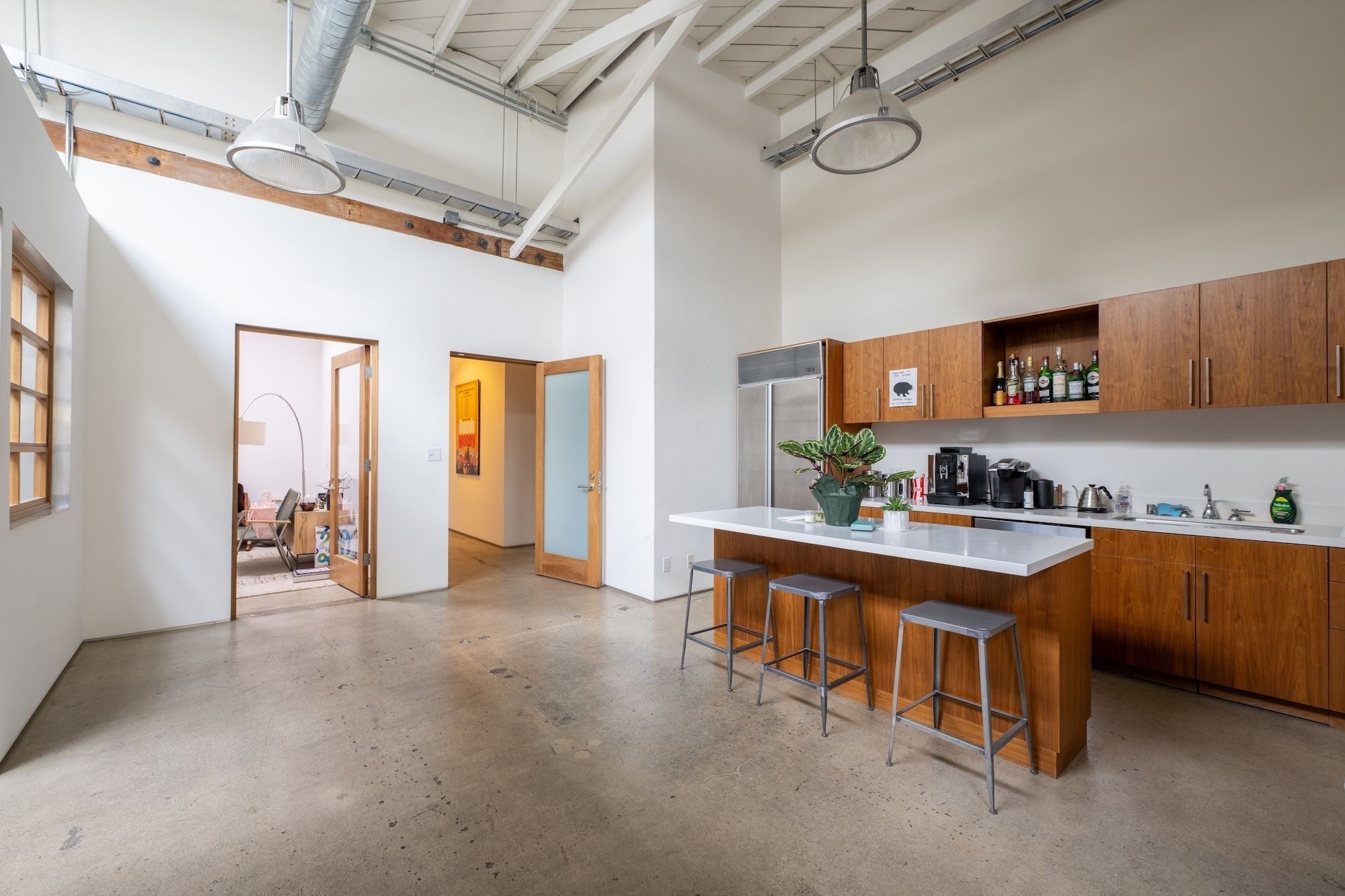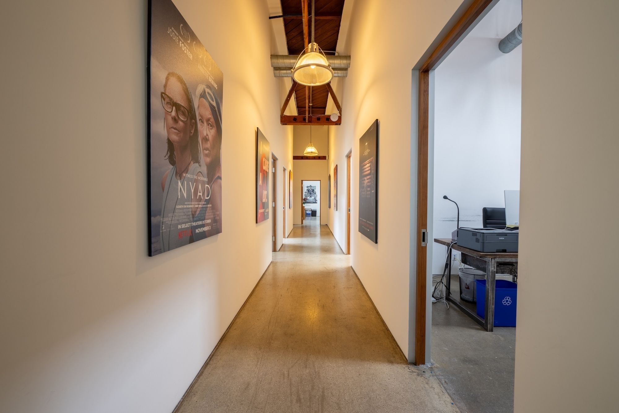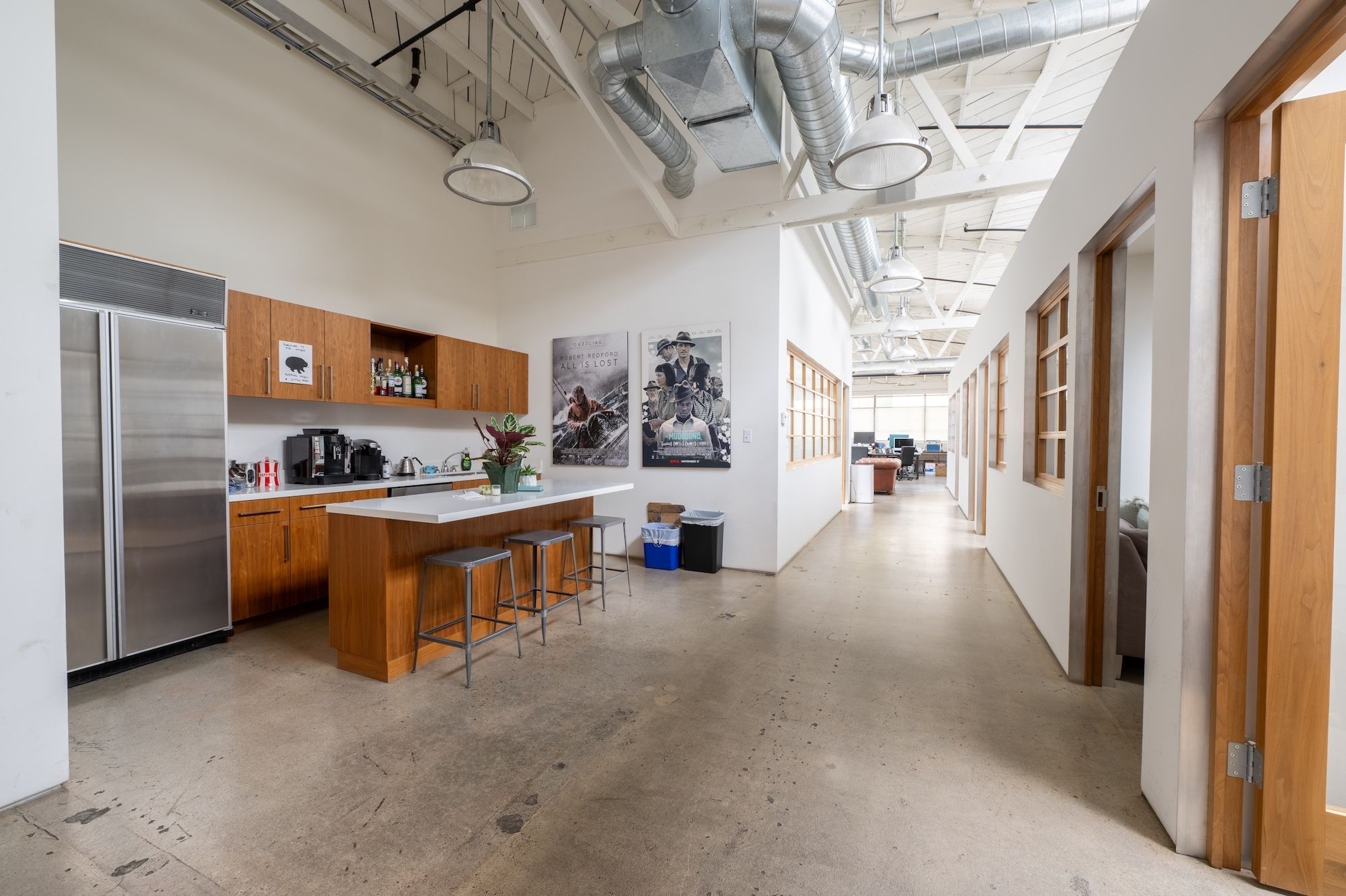 High-end production offices with exposed ceilings and natural light.