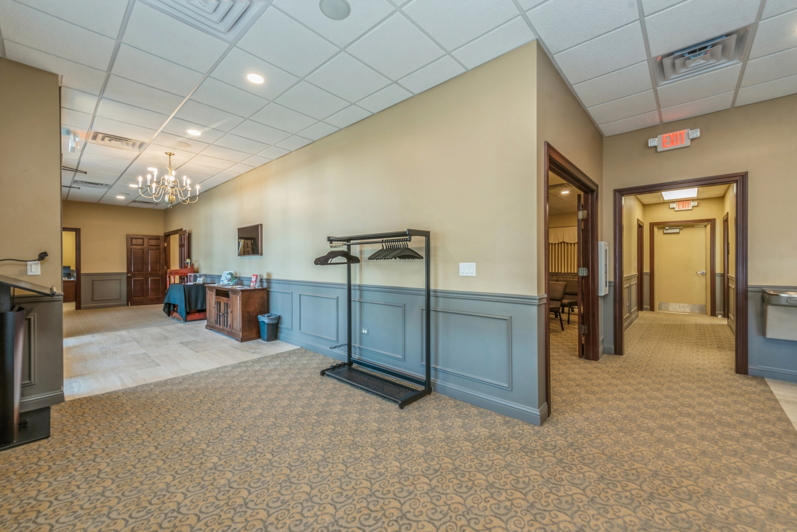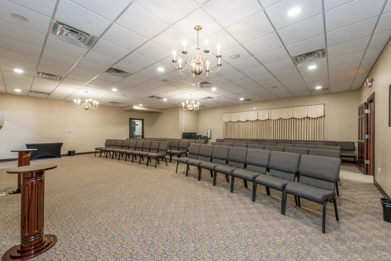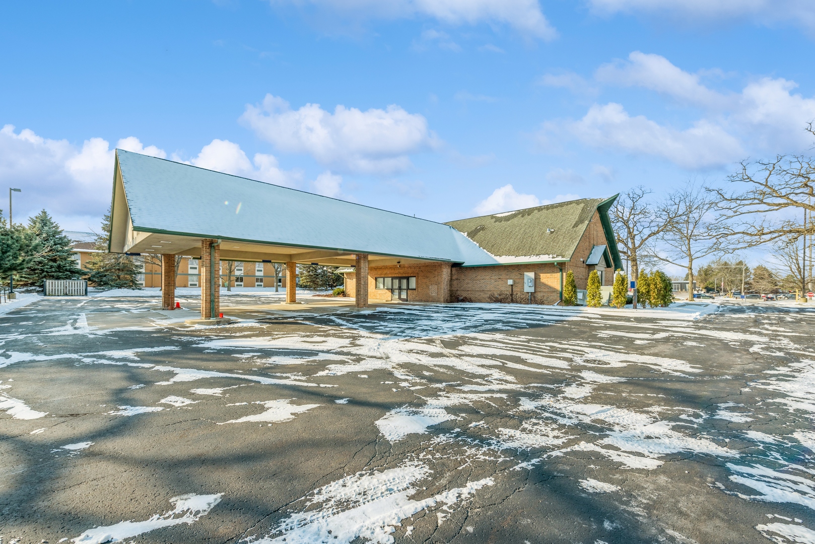 This is a 3100 square foot, all-brick, free-standing building located near the corner of Route 14 and Route 47. Formerly a bank, the building was converted to a chapel and banquet hall. The spacious building includes a main room, a private office, and a bathroom, along with two public bathrooms. It also features a large front area, a public kitchen, and an eating and entertainment area, as well as an additional large outside area under a roof. There are 32 parking spots available. The buildout adheres to ADA standards. This property and location could be used for a variety of business uses, including banquets, weddings, events, general business, real estate, a chapel, a church, a corporate office, or a bank.