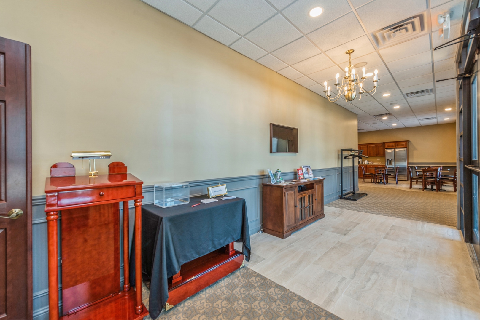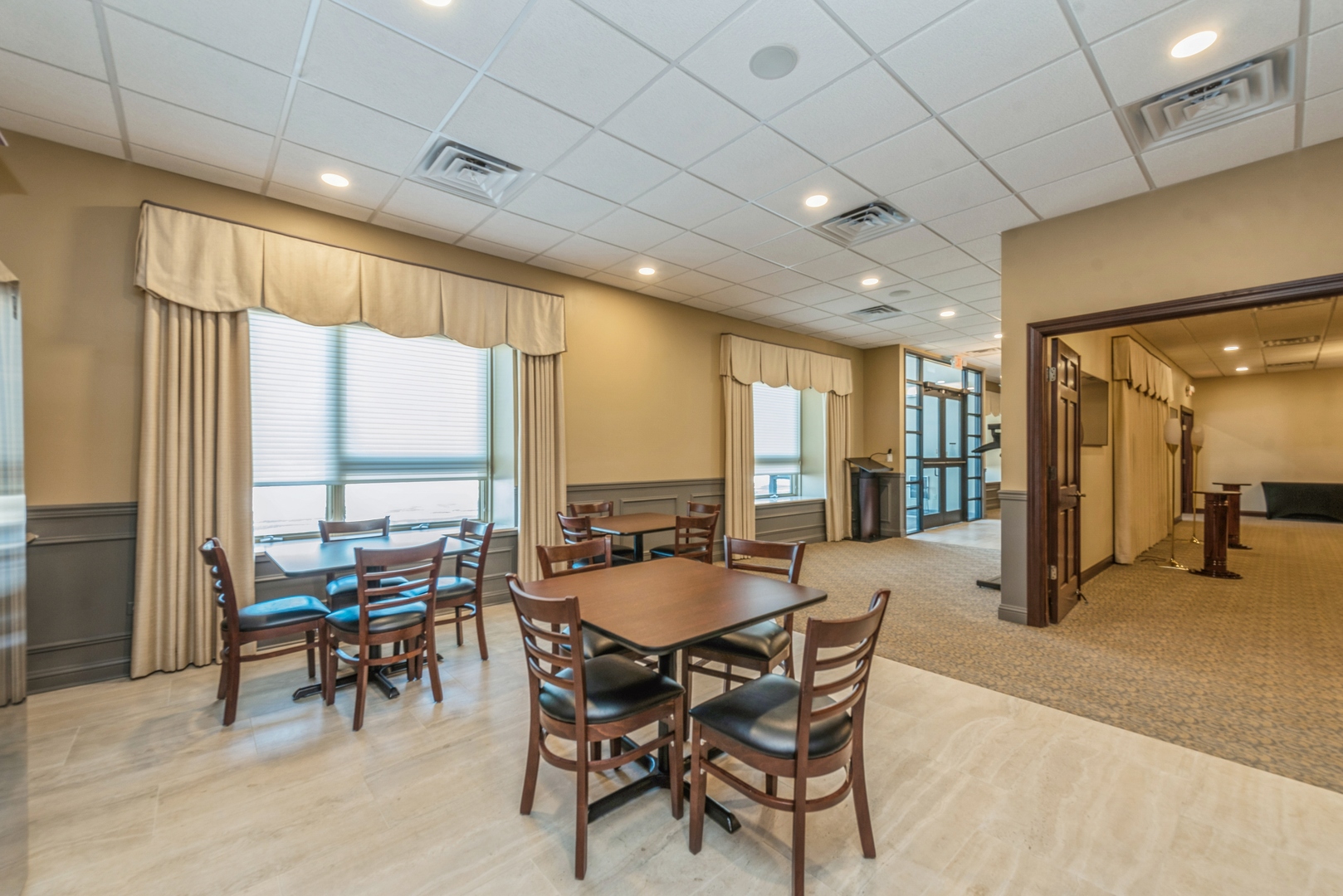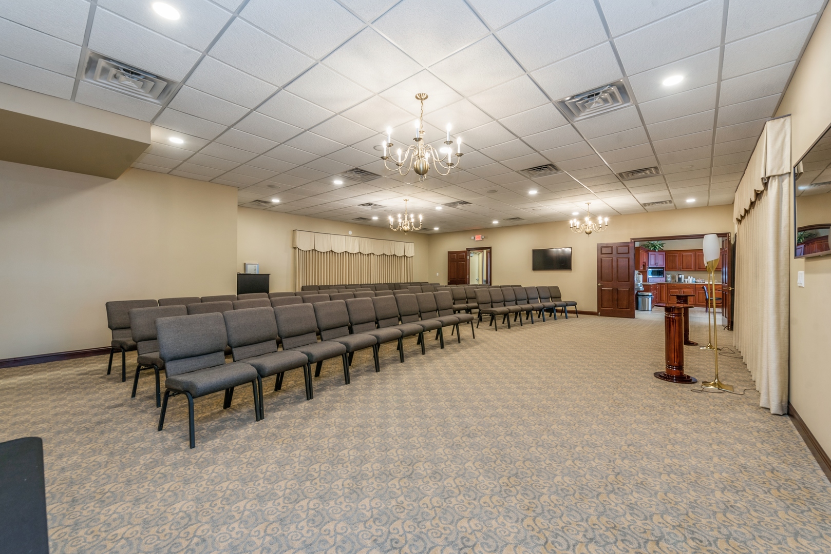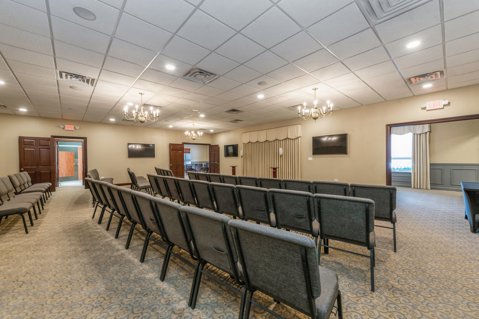 This is a 3100 square foot, all-brick, free-standing building located near the corner of Route 14 and Route 47. Formerly a bank, the building was converted to a chapel and banquet hall. The spacious building includes a main room, a private office, and a bathroom, along with two public bathrooms. It also features a large front area, a public kitchen, and an eating and entertainment area, as well as an additional large outside area under a roof. There are 32 parking spots available. The buildout adheres to ADA standards. This property and location could be used for a variety of business uses, including banquets, weddings, events, general business, real estate, a chapel, a church, a corporate office, or a bank.