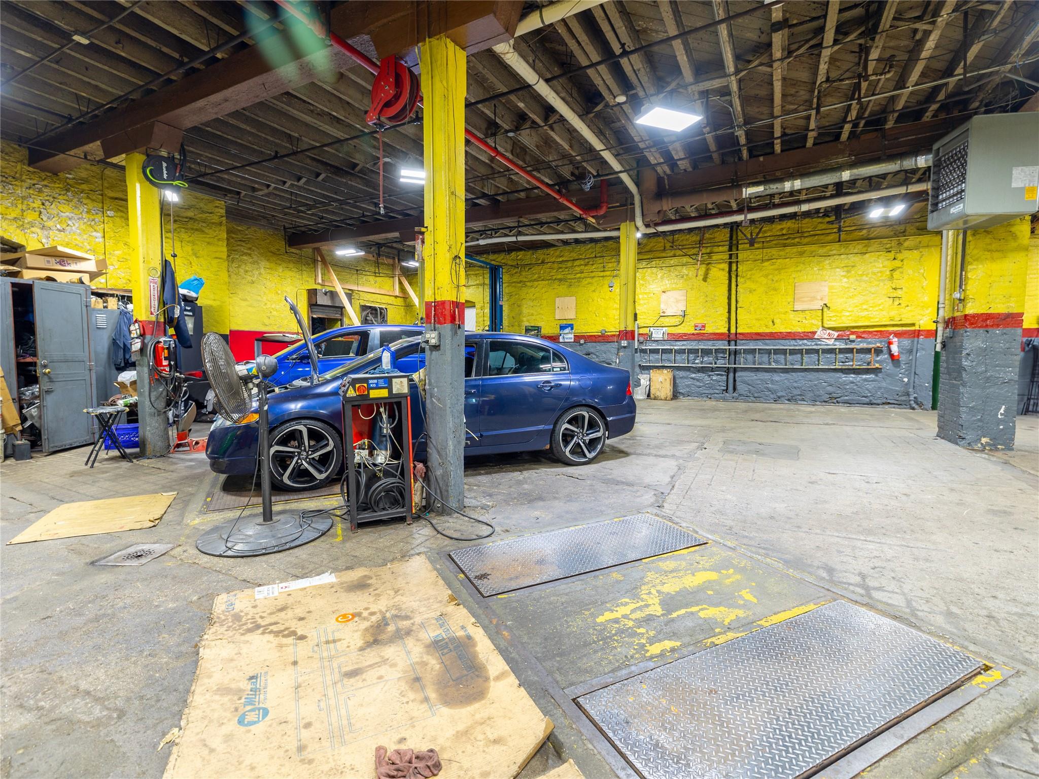 Commercial building with auto repair business, land, and parking rights.
